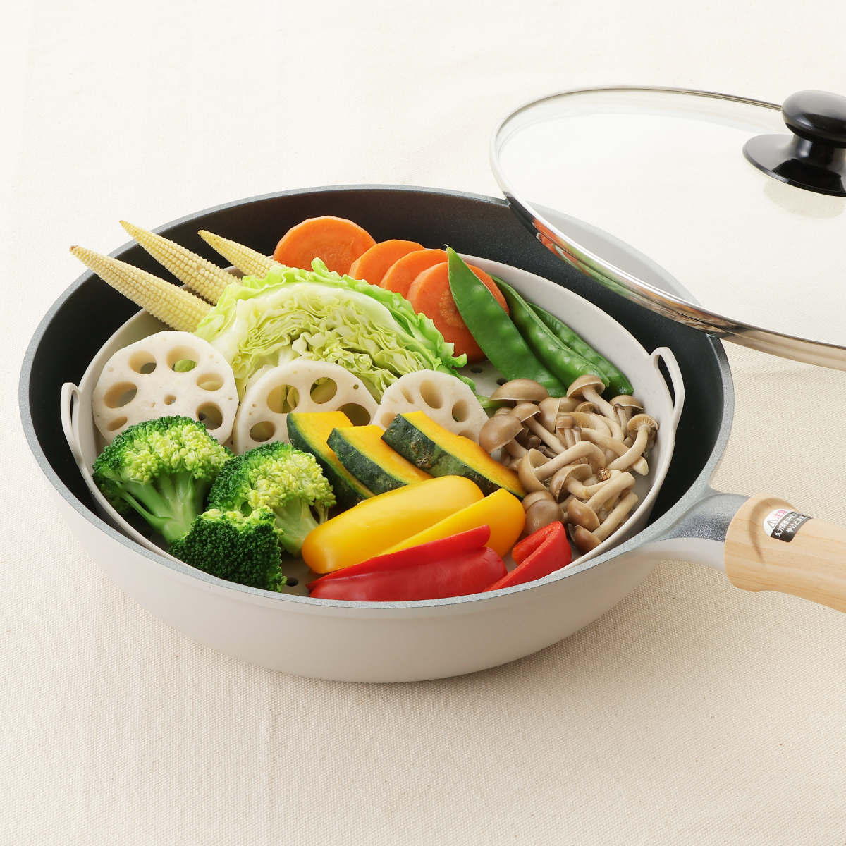 お鍋に乗せるだけで蒸し器に変身