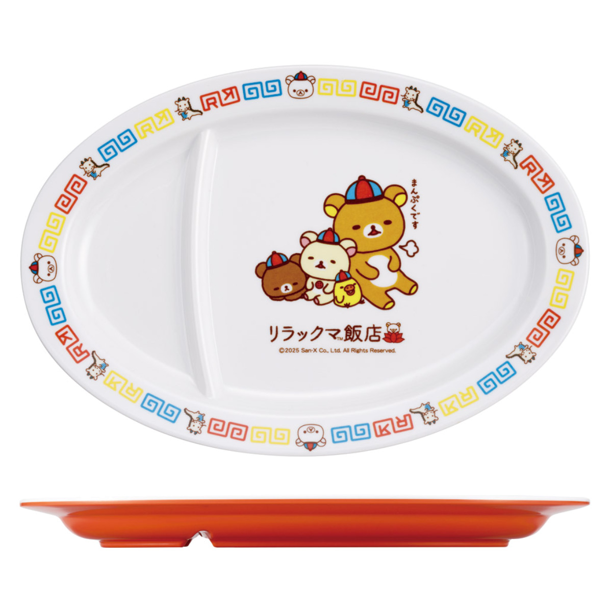 リラックマの中華風ギョーザ皿 23cmいつもの食卓が盛るだけで豊かになる食器シリーズのギョーザ皿です。明るく華やかな中華風デザインがあしらわれており、タレ用仕切り付きで、おうちで「町中華」の雰囲気を楽しめます。思わず揃えたくなる、本格的でかわいい「リラックマ飯店」シリーズで、より外食気分が味わえます。