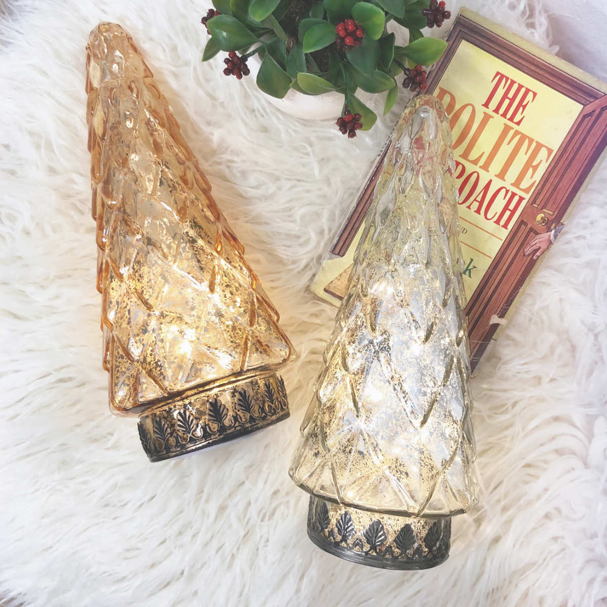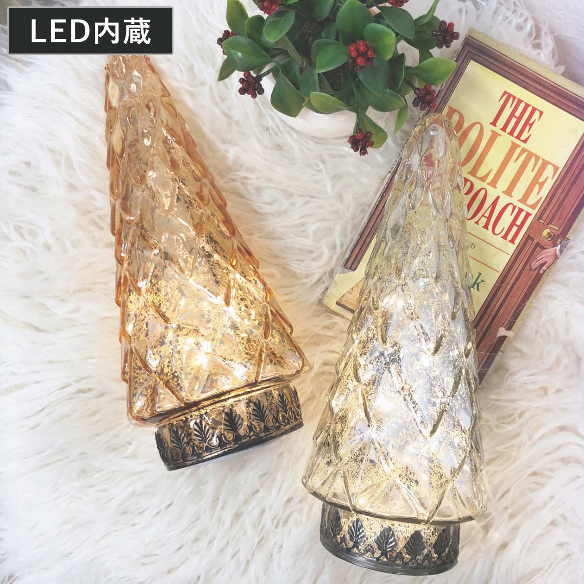 ツリー型のライトでやさしい光のインテリア●ラメがきらめく小さなツリー型のインテリアライトです。