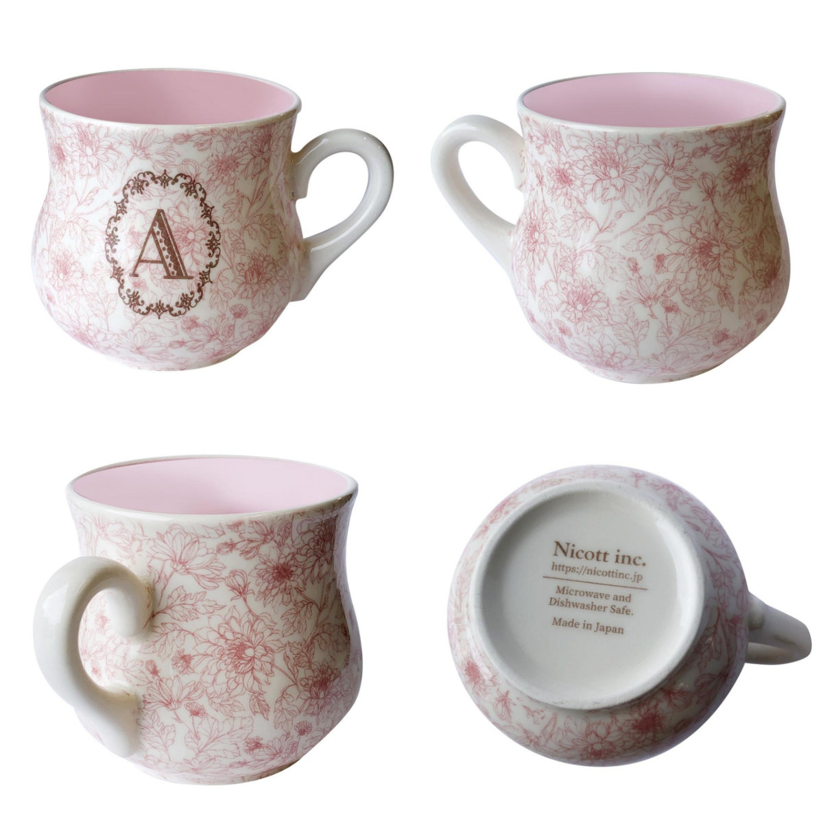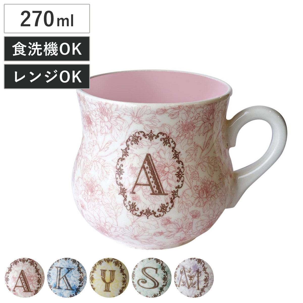 花柄とイニシャルのマグカップ270ml●上品な花柄とイニシャルが入ったマグカップです。
