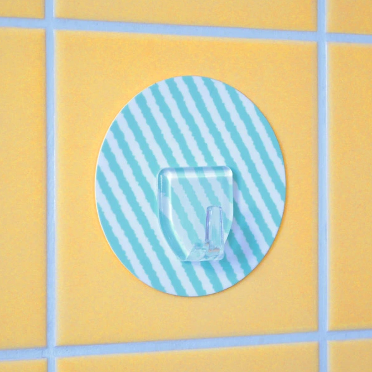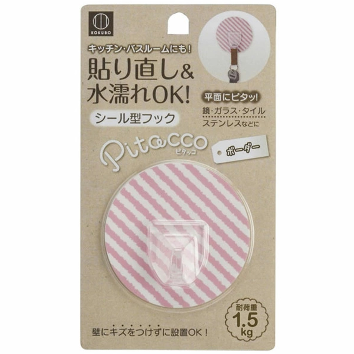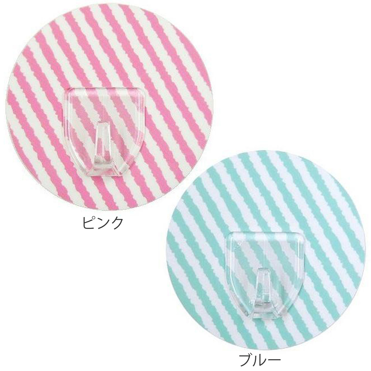 壁をキズつけないシール型フック●壁にキズをつけずに設置できるボーダー柄のフックです。