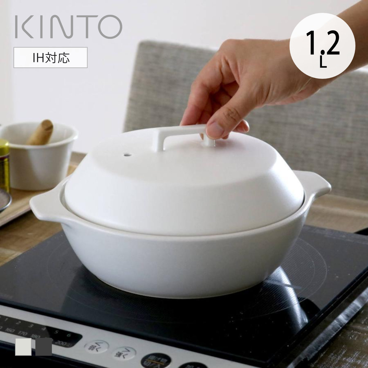 お料理の匂いや汚れが付きにくい土鍋 1.2L季節を問わず、1年中快適に使える土鍋です。本体内側の吸水率が約2パーセント以下と極めて低いので、スパイスの効いたカレー鍋などをしても匂いや汚れが鍋に移りにくく、長く清潔に使うことができます。