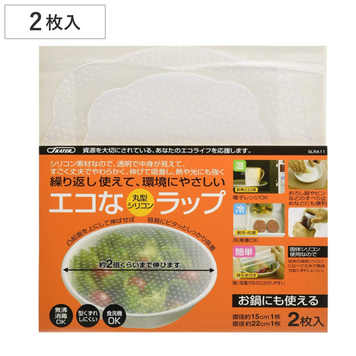 繰り返し使えるシリコンラップシリコン素材でつくられた繰り返し使えるラップです。超軟度シリコンなので、丈夫でやわらかく、伸びてしっかり吸着します。熱に強いので煮沸消毒もでき、衛生面も安心です。