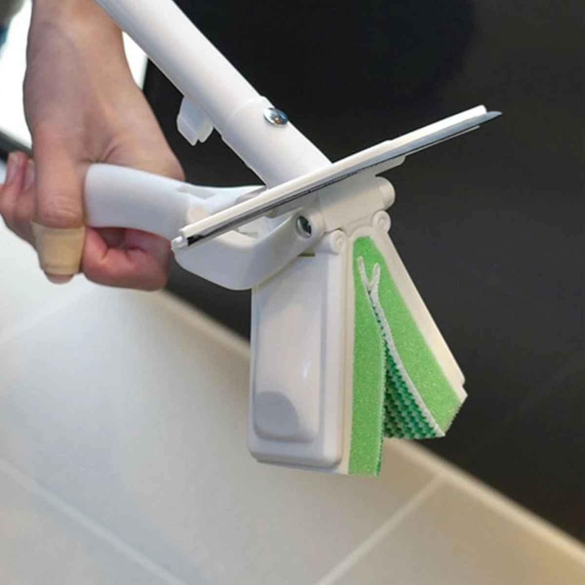 洗剤を使わず浴室をキレイに水を含ませてこするだけで、コシのあるブラシ繊維と柔らかい吸着繊維がカビをかき出し、しっかり拭きとります。これ1本で浴室の天井や壁の掃除とカビ取りを一度に行えます。