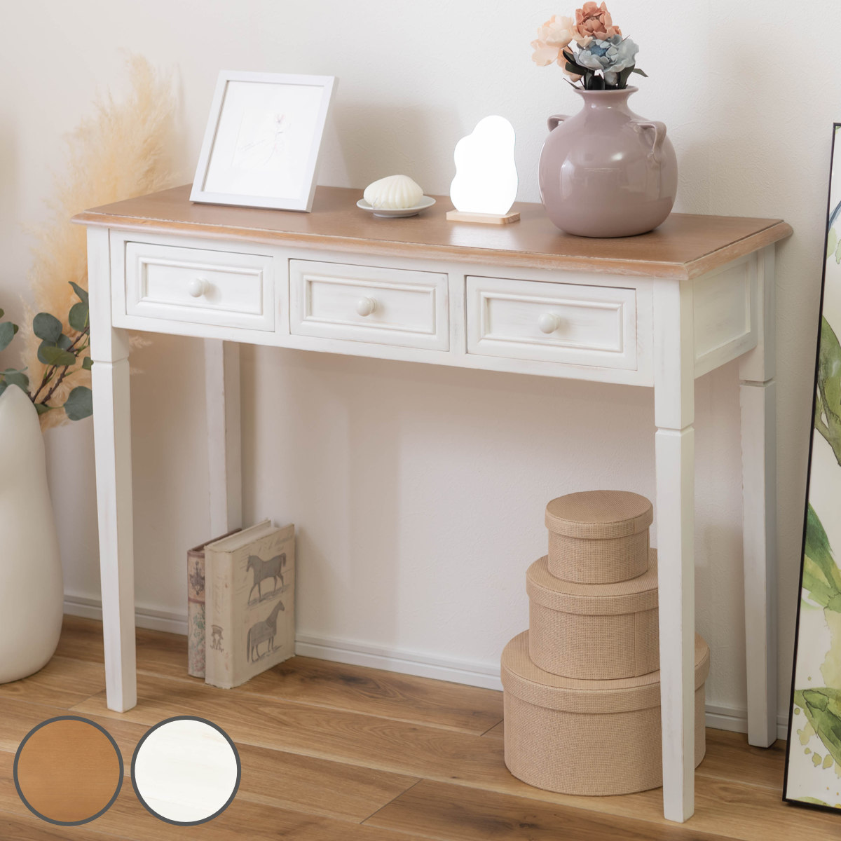 玄関 リビング ヴィンテージ調 ナチュラル カントリー調 木製 テレビ台 玄関周り エントランス 寝室 メイク台 ドレッサー 小物整理 シンプル シャービー フレンチ ヨーロピアン ヨーロッパ 可愛い かわいい 在宅ワーク 簡易机 ベッドルーム 約 幅100 奥行 33 高さ 74 cm センチ デスク パソコン ディスプレイ棚 Aube オーブ COD 桐 LH9195
