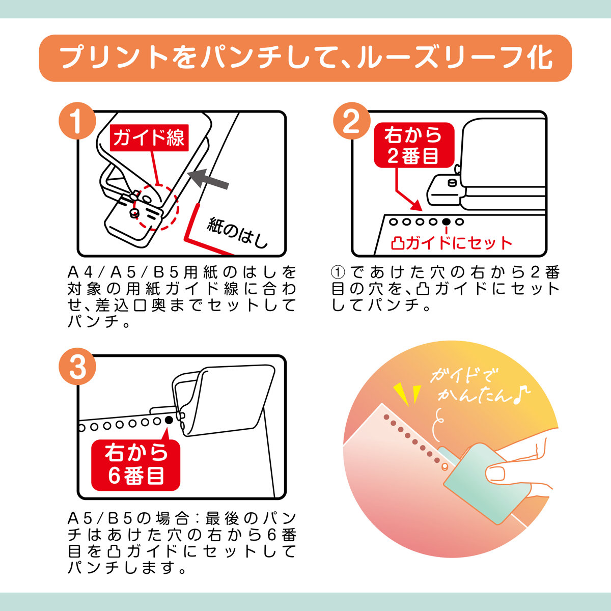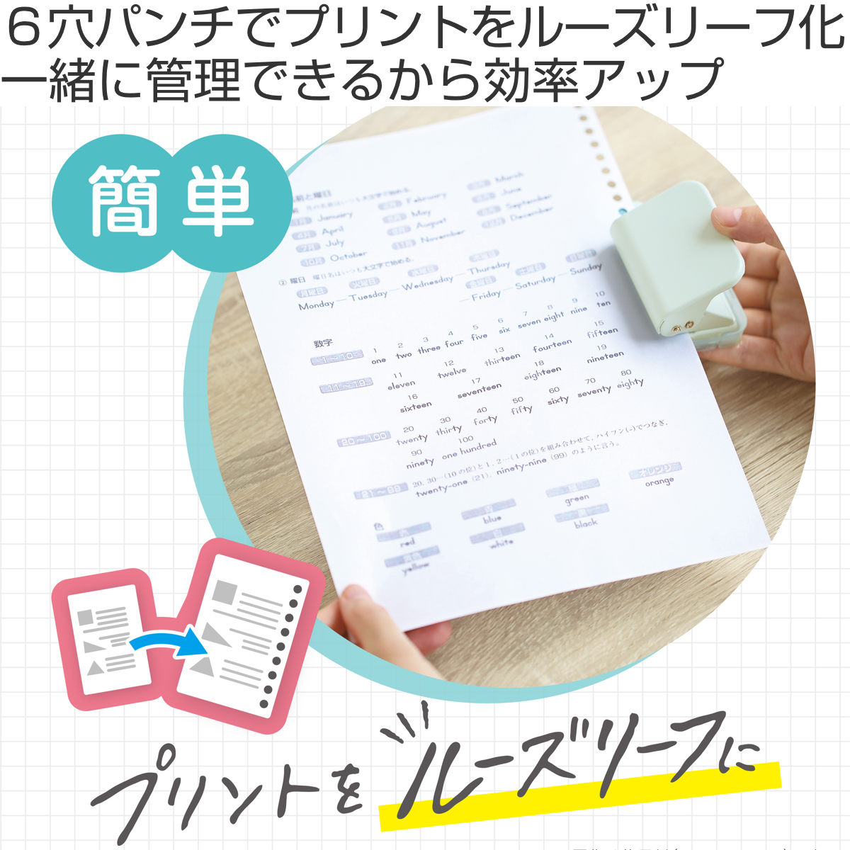 パンチ穴 ルーズリーフ パンチ 6穴式 コンパクト ( 穴あけパンチ A5 B5 A4 用紙 ガイド付き 持ち運び 勉強 学習 学校 塾 オフィス 事務 )