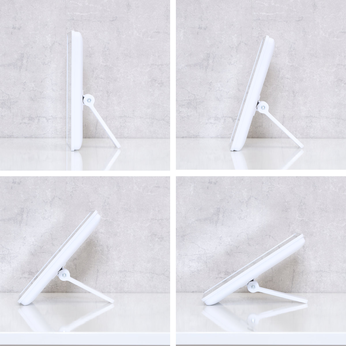 スタンド角度調整スタンドは無段階で角度調整が可能。デスクやドレッサーの高さに合わせて、見やすい角度にセットできます。