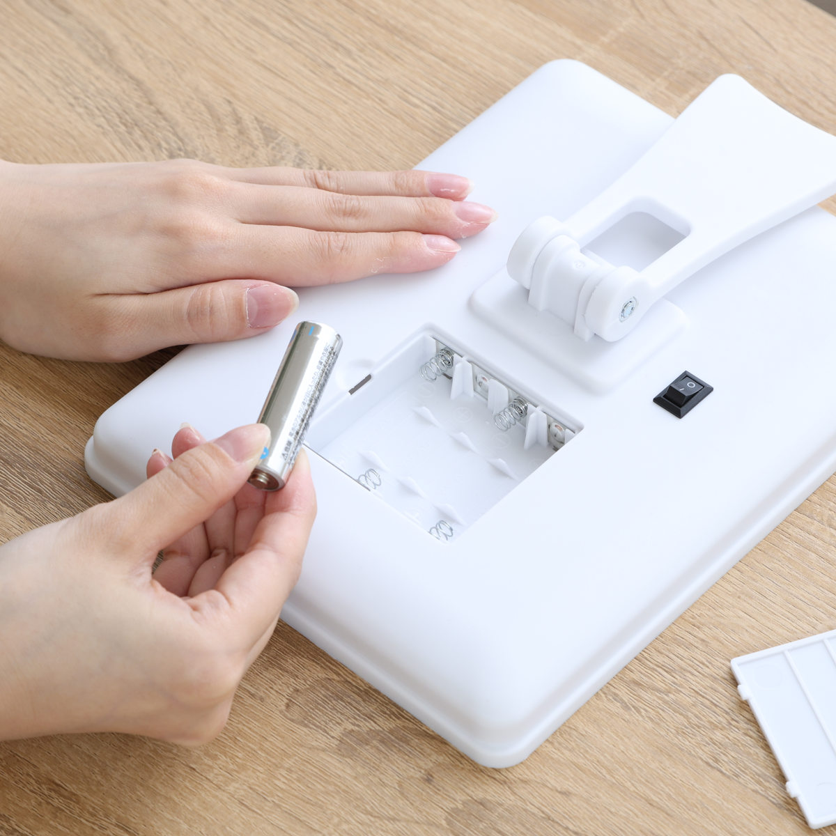 乾電池式で置き場所自由乾電池タイプのため、電源コード不要。コンセントの位置を気にせず、好きな場所で使用できます。