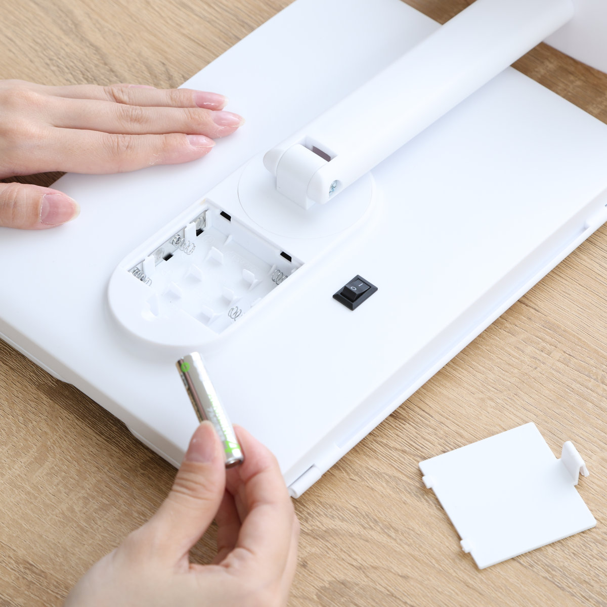乾電池式で置き場所自由乾電池タイプのため、電源コード不要。コンセントの位置を気にせず、好きな場所で使用できます。