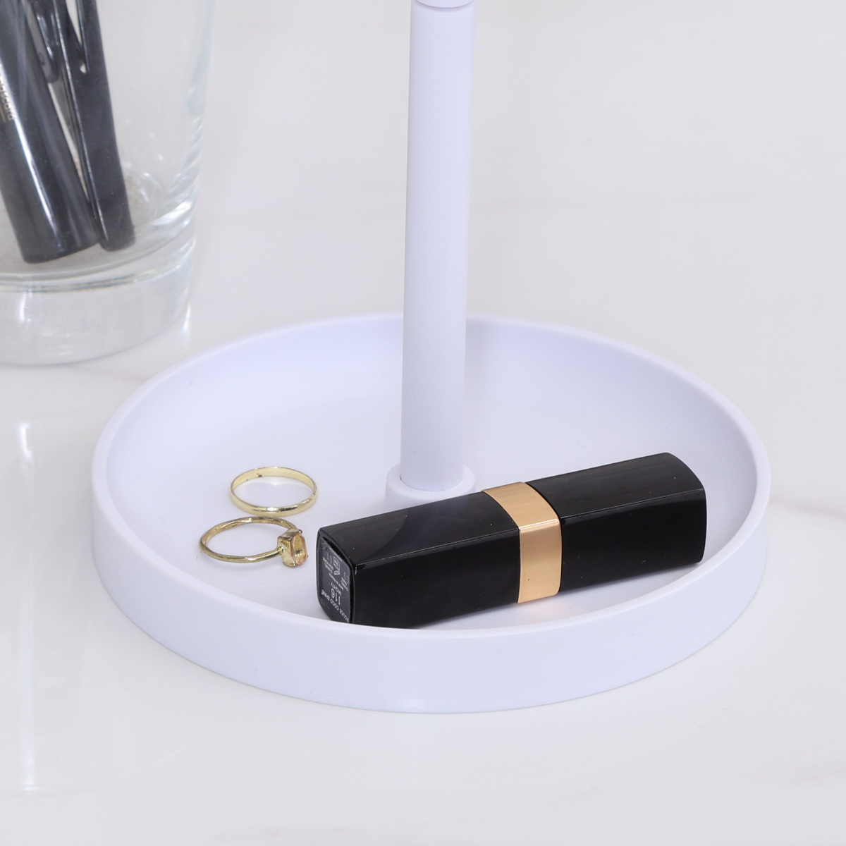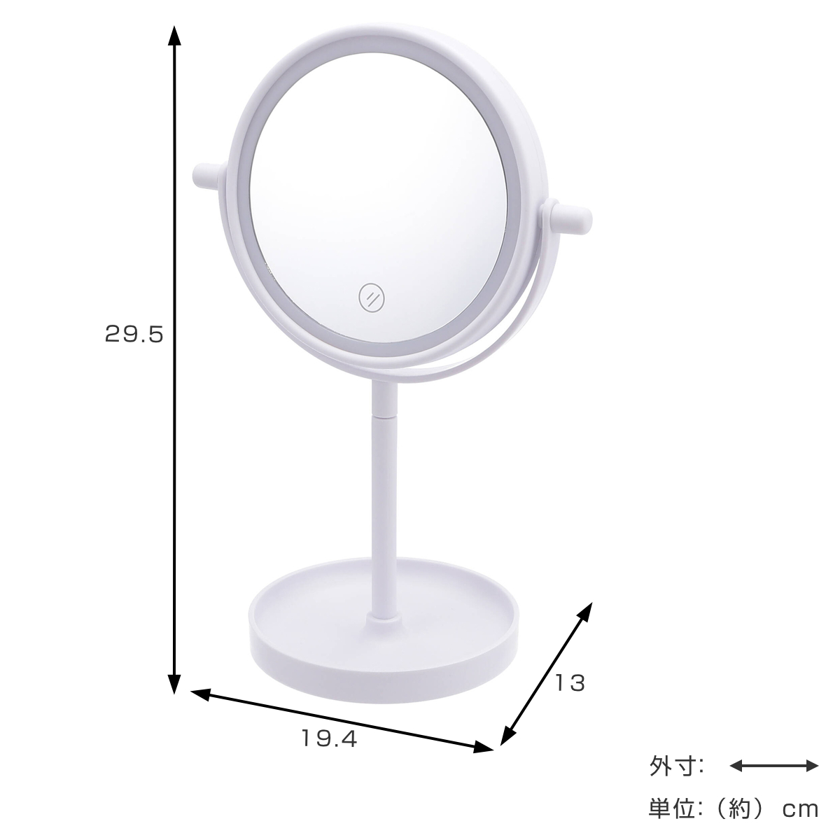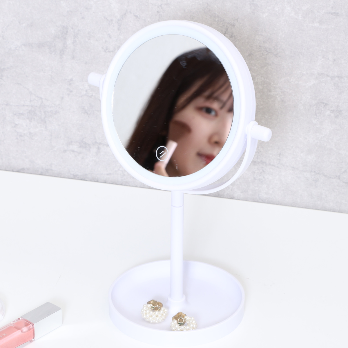 LEDライト付き卓上ラウンドミラーラウンド型のフォルムがやさしい印象の卓上LEDミラー。インテリアになじみやすく、毎日の身支度を心地よくサポートします。