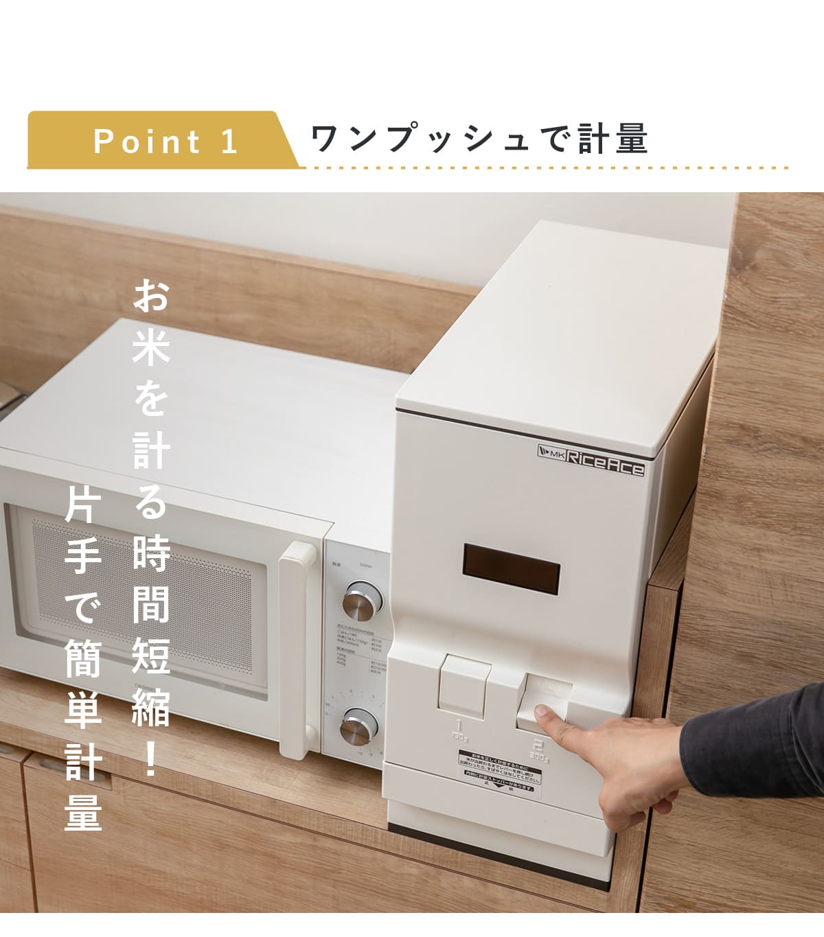 ●1合、2合の2レバー計量方式により、面倒な計量の手間が省けます。