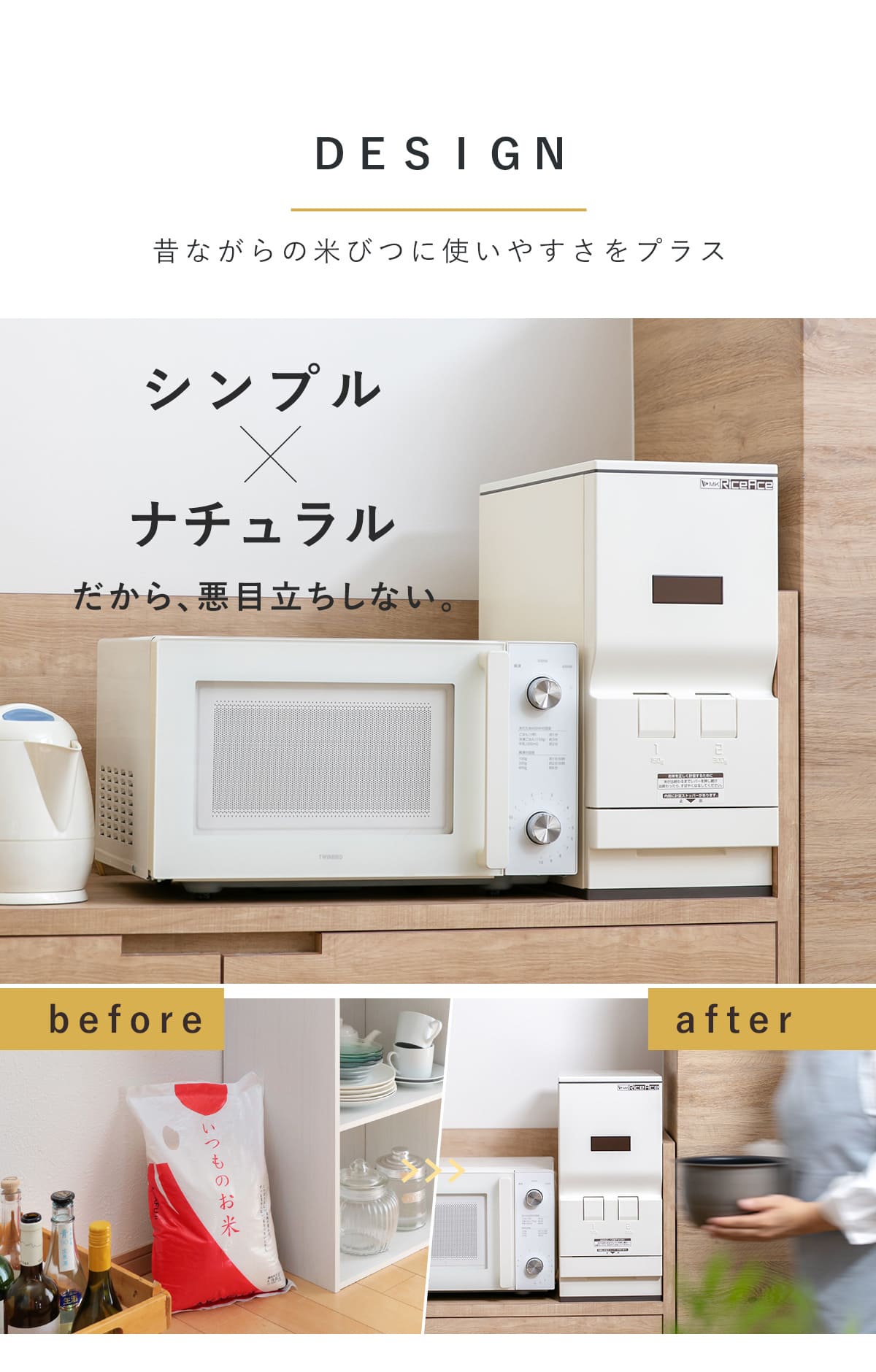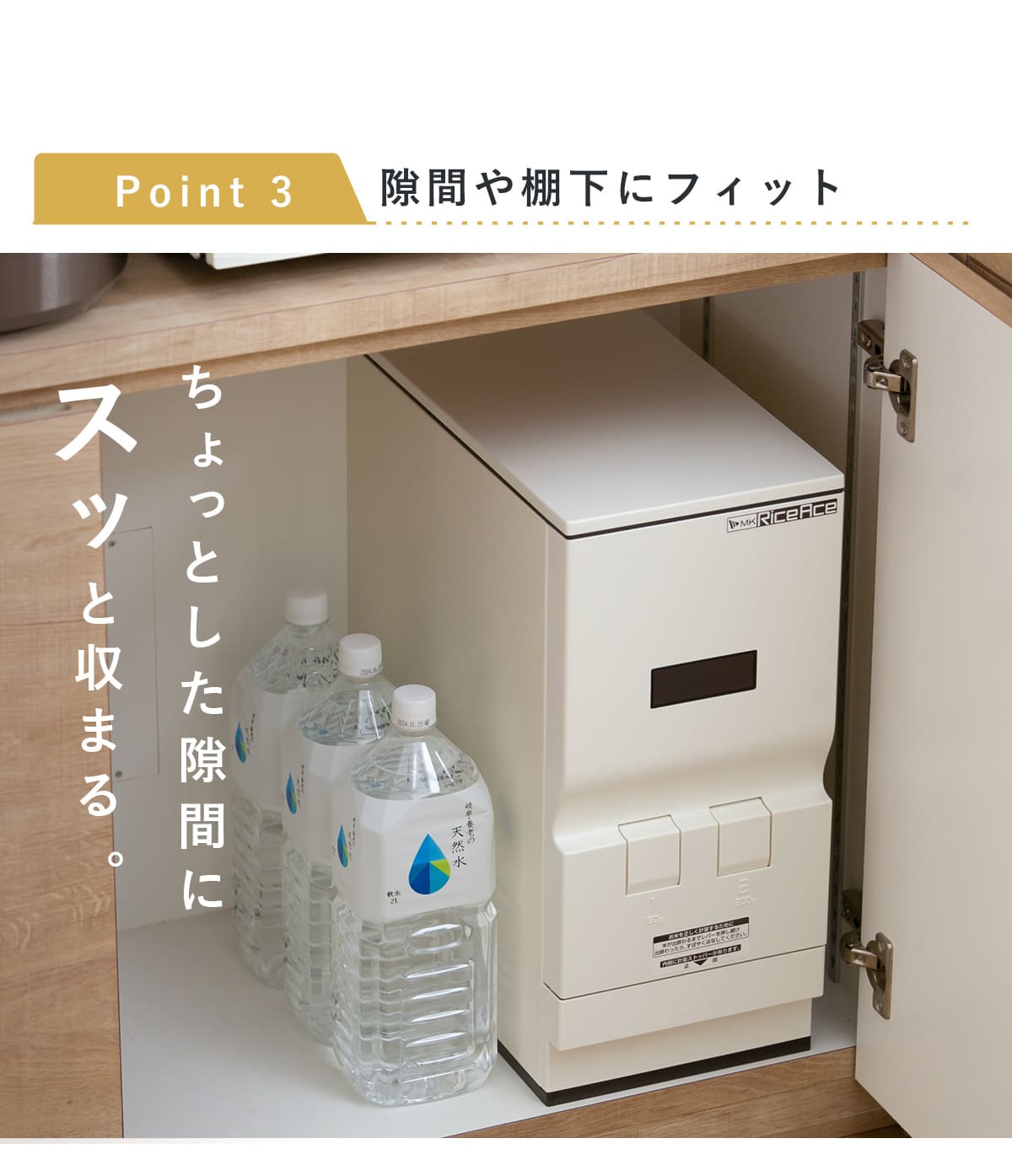 ●スリムタイプでシンク下や隙間にすっきり置ける計量米びつです。