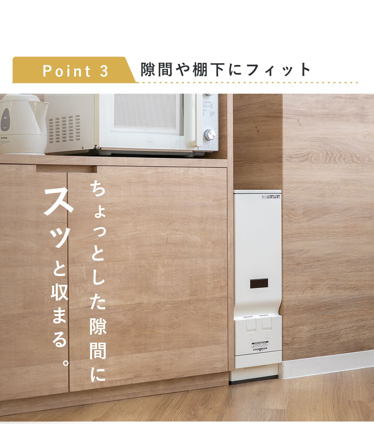 ●スリムタイプでシンク下や隙間にすっきり置ける計量米びつです。