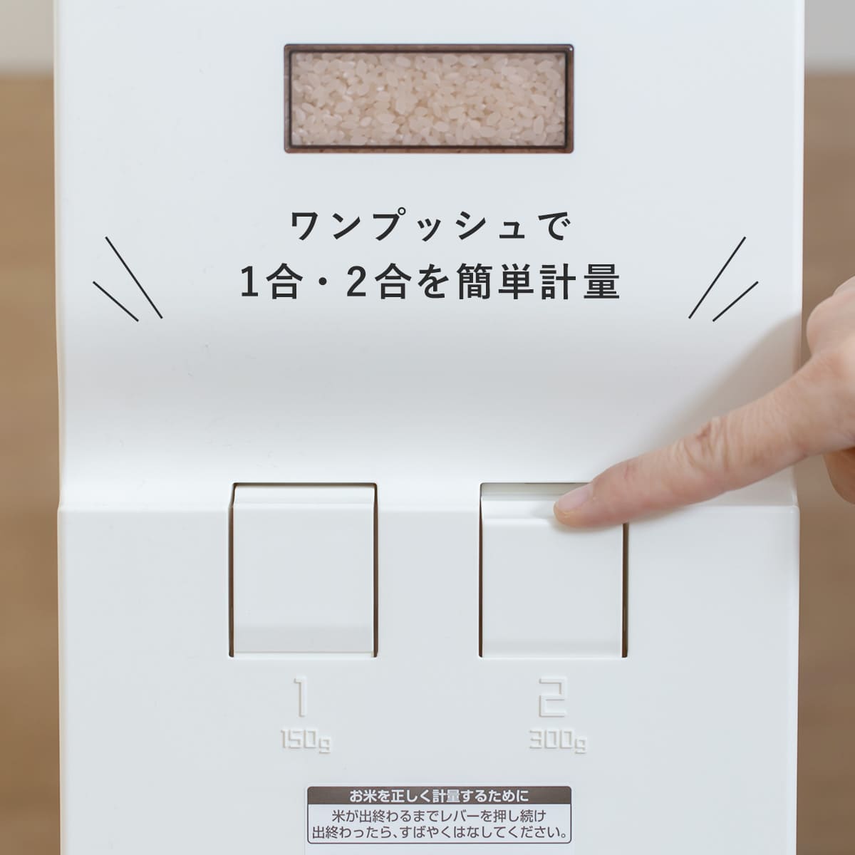 ●1合、2合の2レバー計量方式により、面倒な計量の手間が省けます。