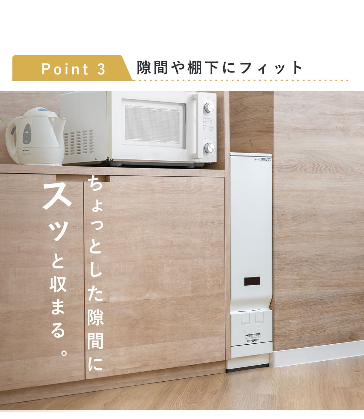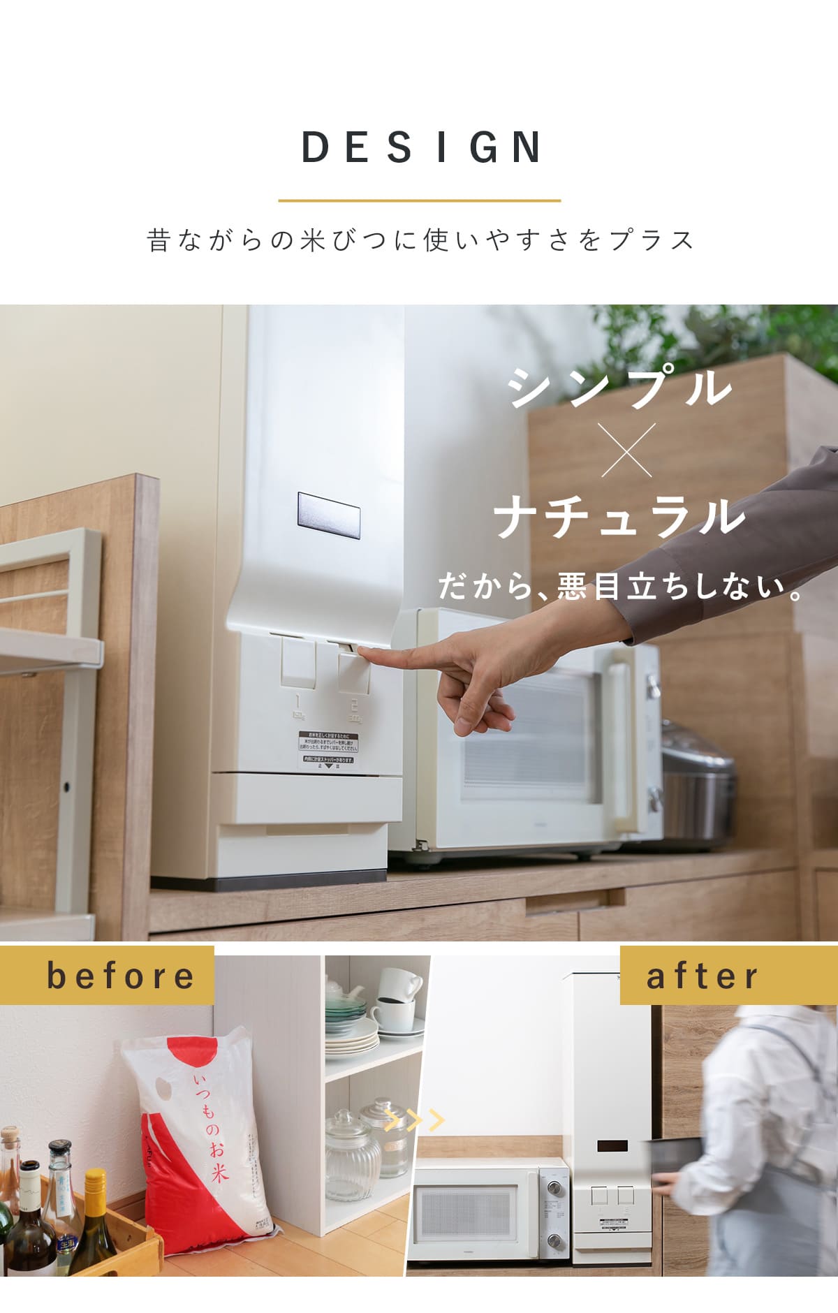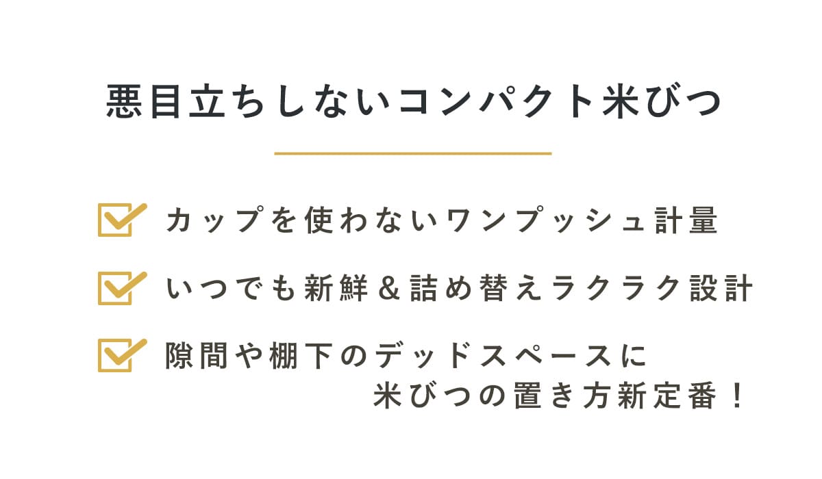 ●スリムタイプでシンク下や隙間にすっきり置ける計量米びつです。