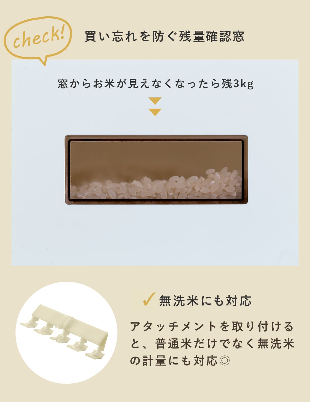 ●付属のアタッチメントの脱着で、無洗米にも普通米にも対応できます。