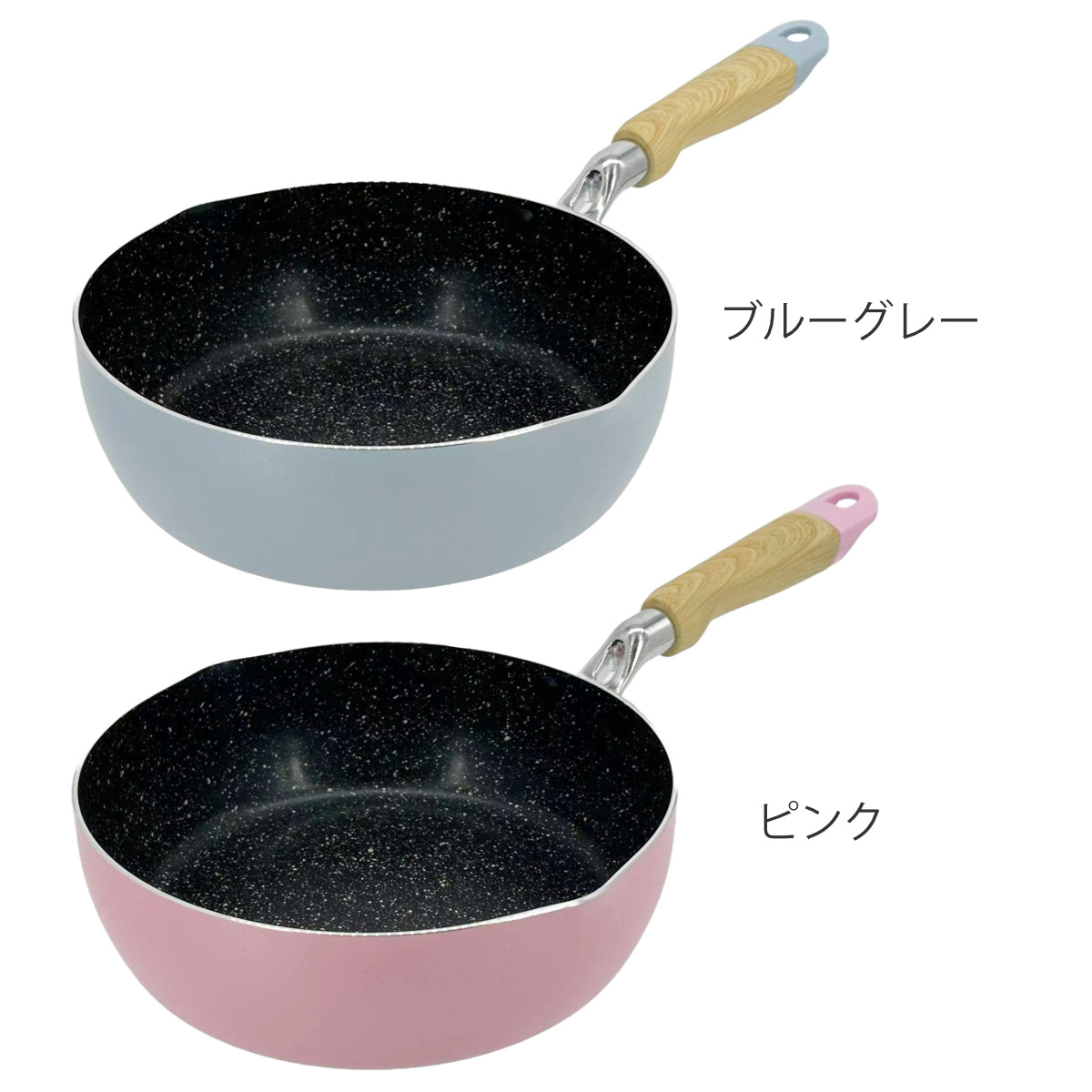 | 材質 | 本体:アルミニウム合金 底面:ステンレス鋼 内面:ふっ素樹脂加工(シルクウエアEL・マーブル) 外面:焼付塗装 |