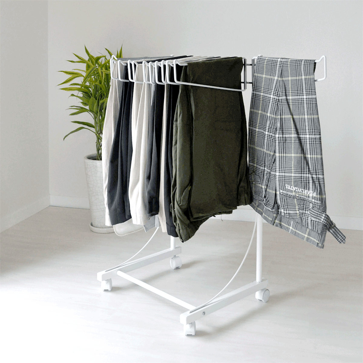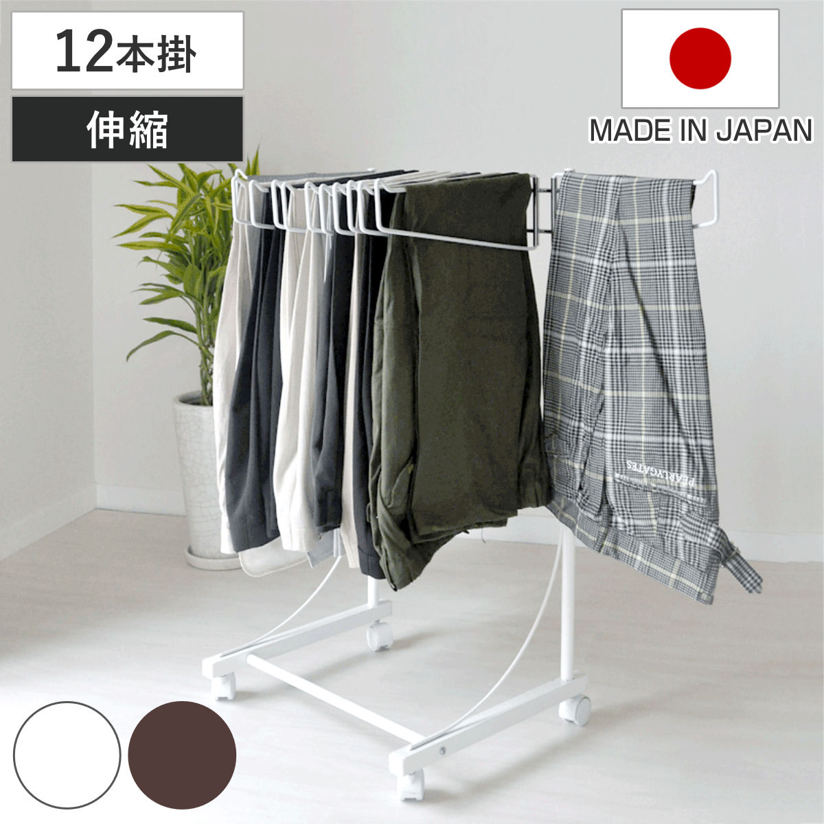 掛けるだけで、パンツ収納が整う伸縮式スラックスハンガー●スラックスを最大12本まで収納できる、省スペース設計のスラックスハンガーです。