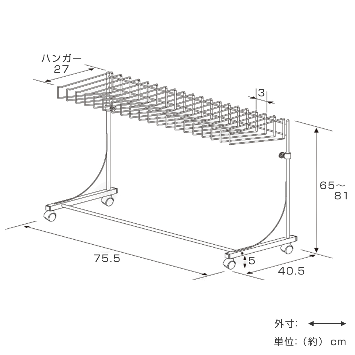 | サイズ | 約 幅75.5×奥行40.5×高さ65〜81(cm) |