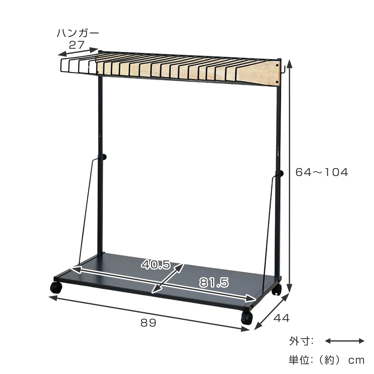 | サイズ | 約 幅89×奥行44×高さ64〜104(cm) ハンガー部:長さ約37cm 下段棚板:約幅81.5 奥行40.5cm |