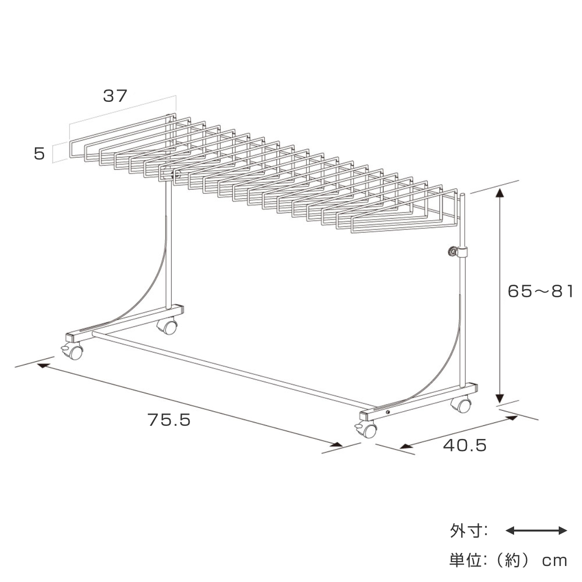 | サイズ | 本体:約 幅75.5×奥行40.5×高さ65〜81(cm) ズボン掛け:約 幅37×高さ5(cm) |