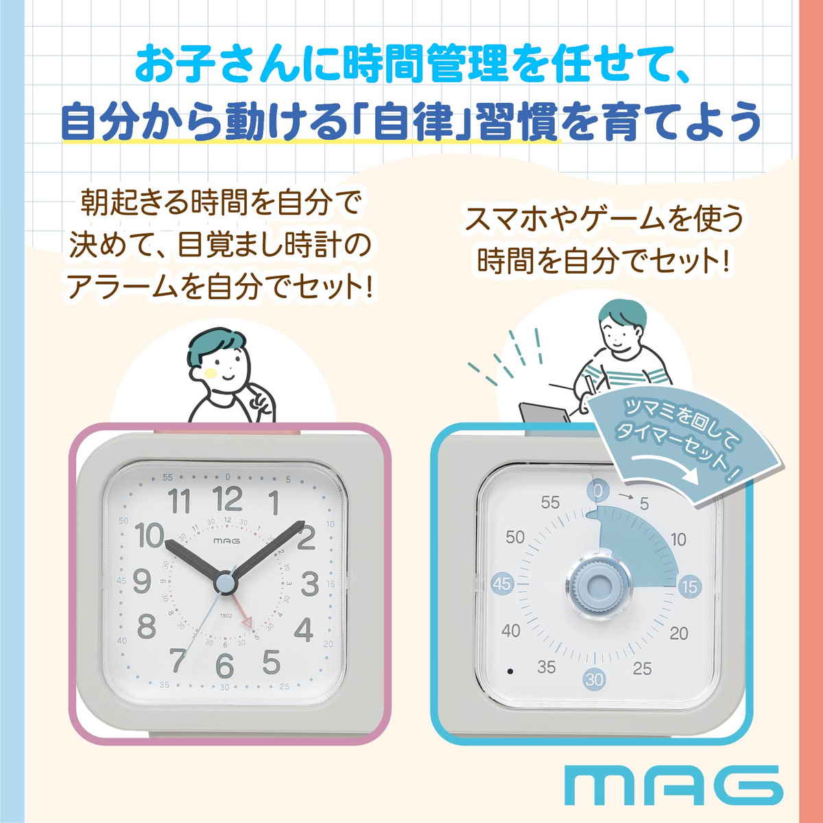 知育時計よーめる 連続秒針 静音 タイマー付き 置き時計 MAG ( 卓上時計 アナログ タイマー 知育時計 時計 クロック )