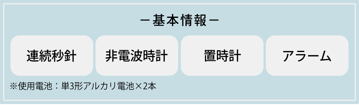 ●秒針音が気にならない連続秒針を採用しており、寝室など静かな空間でも快適に使えます。