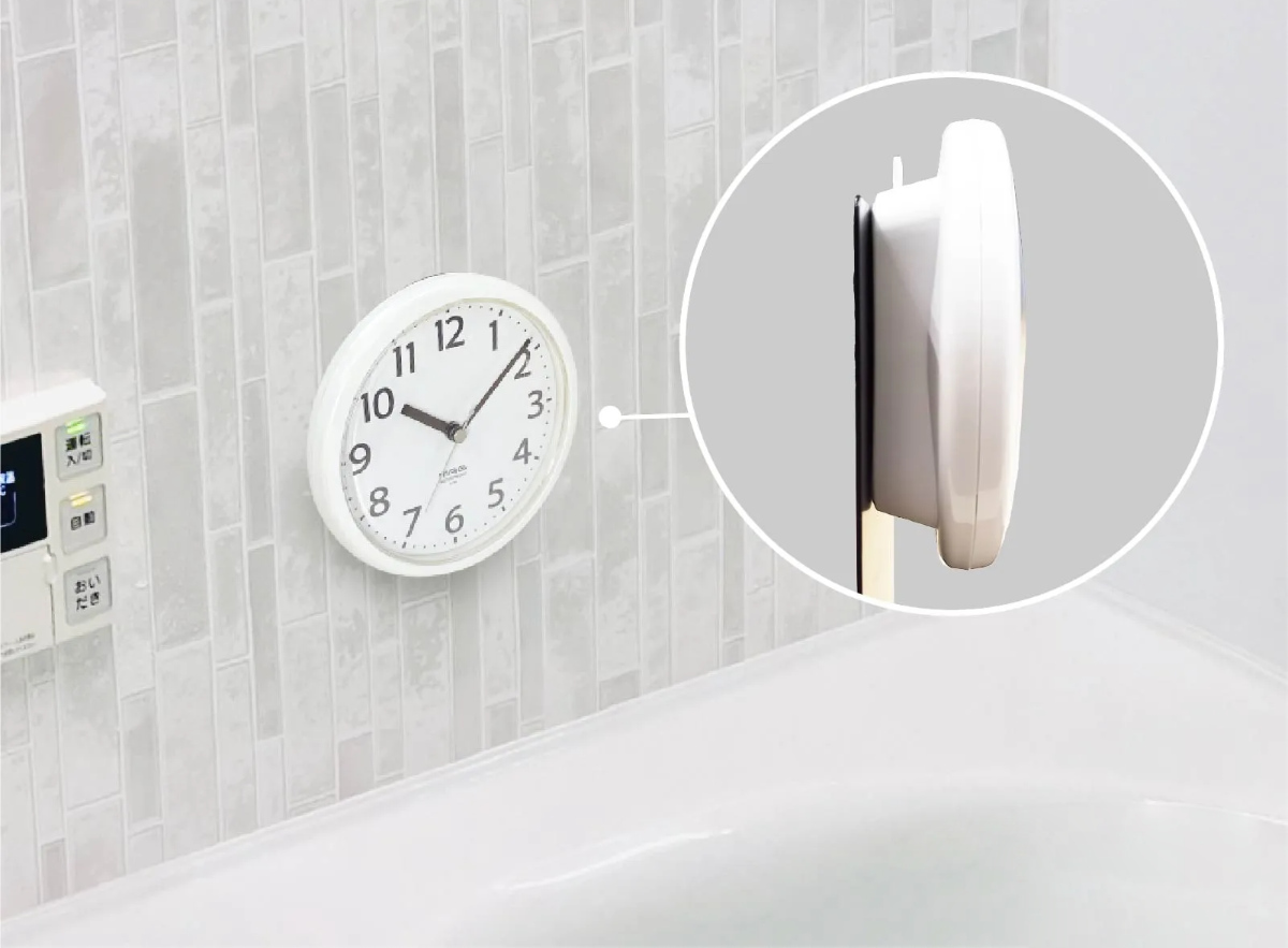 生活防水性能IP54はあらゆる方向からの水しぶきや粉塵の侵入を防ぐ設計で、湿気の多い場所でも安心して使用可能です。浴室や洗面所など、水まわりの時間管理に適した時計です。