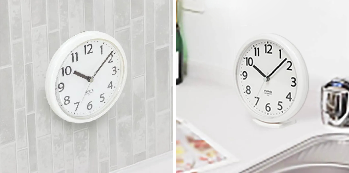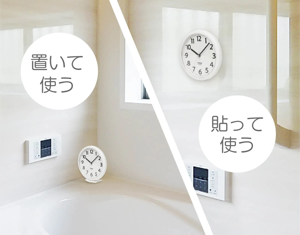 お風呂場 バスタイム ヘアカラー 洗面台 シャワークロック お風呂時計 キッチン 台所 浴室 防水性能IP54 生活防水 静か 連続秒針 連続 カチカチしない スイープ秒針 サイレントムーブメント 置き時計 卓上 便利 LH2265