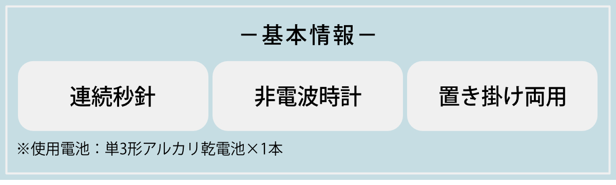 秒針がすべるようにして文字盤上をスムーズに動きます。カチカチ音がしないので、寝室など静かな場所でのご使用にもおすすめです。