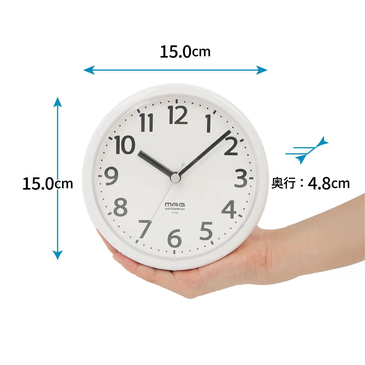 掛け時計 防水 浴室用 マグネット付き コンパクト MAG ( お風呂 時計 マグネット アナログ バスクロック クロック 壁掛け )