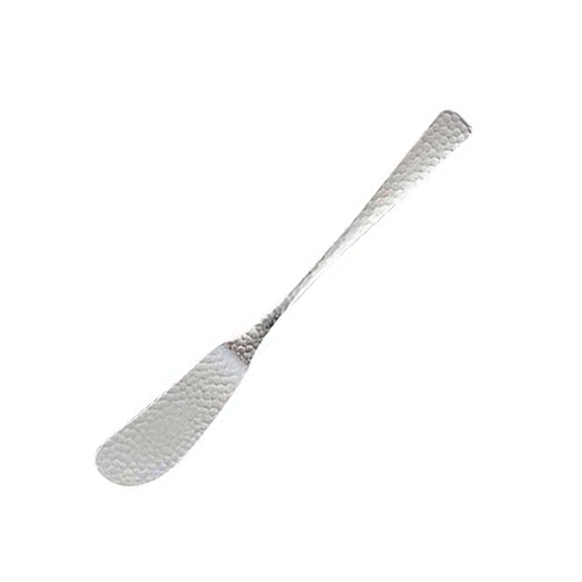 ステンレス素材に施した槌目模様が、光をやわらかく反射するバタースプレターです。無機質になりがちな金属に、手仕事の温もりを感じさせる表情をプラスしました。和洋どちらの食卓にも自然になじむ、上品な一本です。
