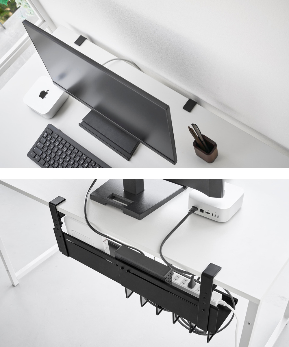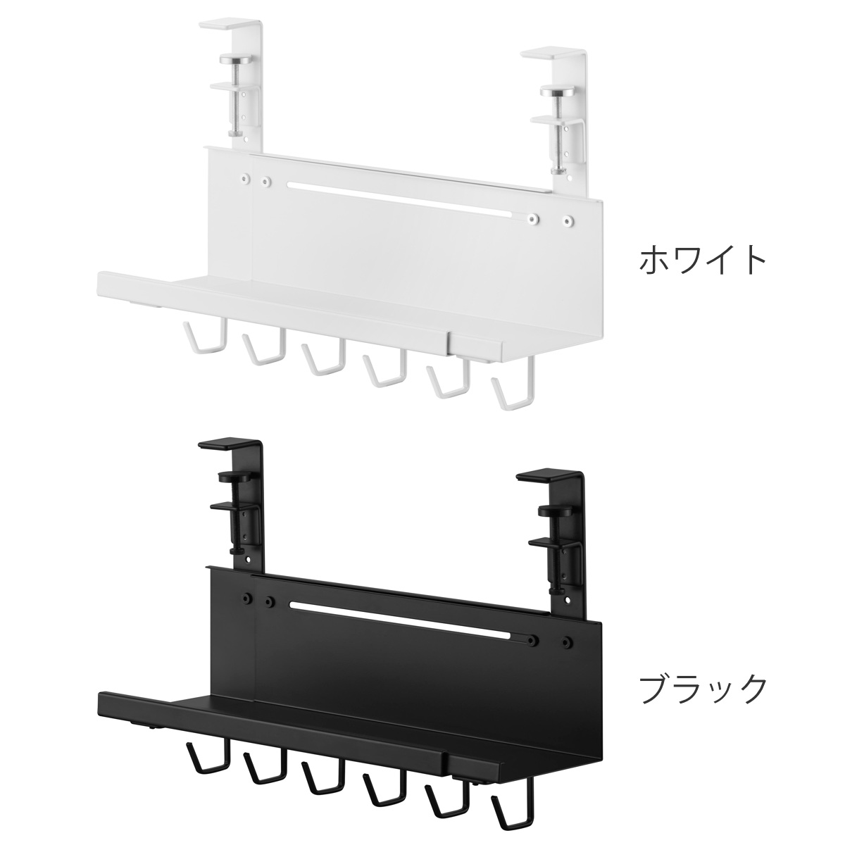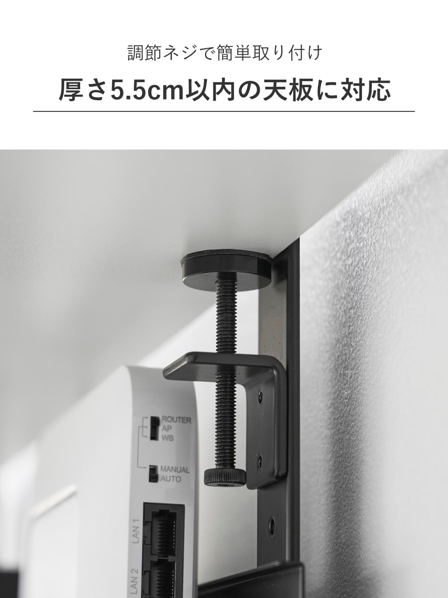 | 備考 | 【取り付け可能な場所】 天板の厚さが1〜5.5cm(幕板やパイプ等含む) 幅37cm以上(脚含まず) 奥行4.5cm以上 天板下の高さ26.3cm以内に干渉する柱や脚などがない平らなデスク等 ※設置場所の構造や材質、形状によっては取り付けできない場合があります。 |