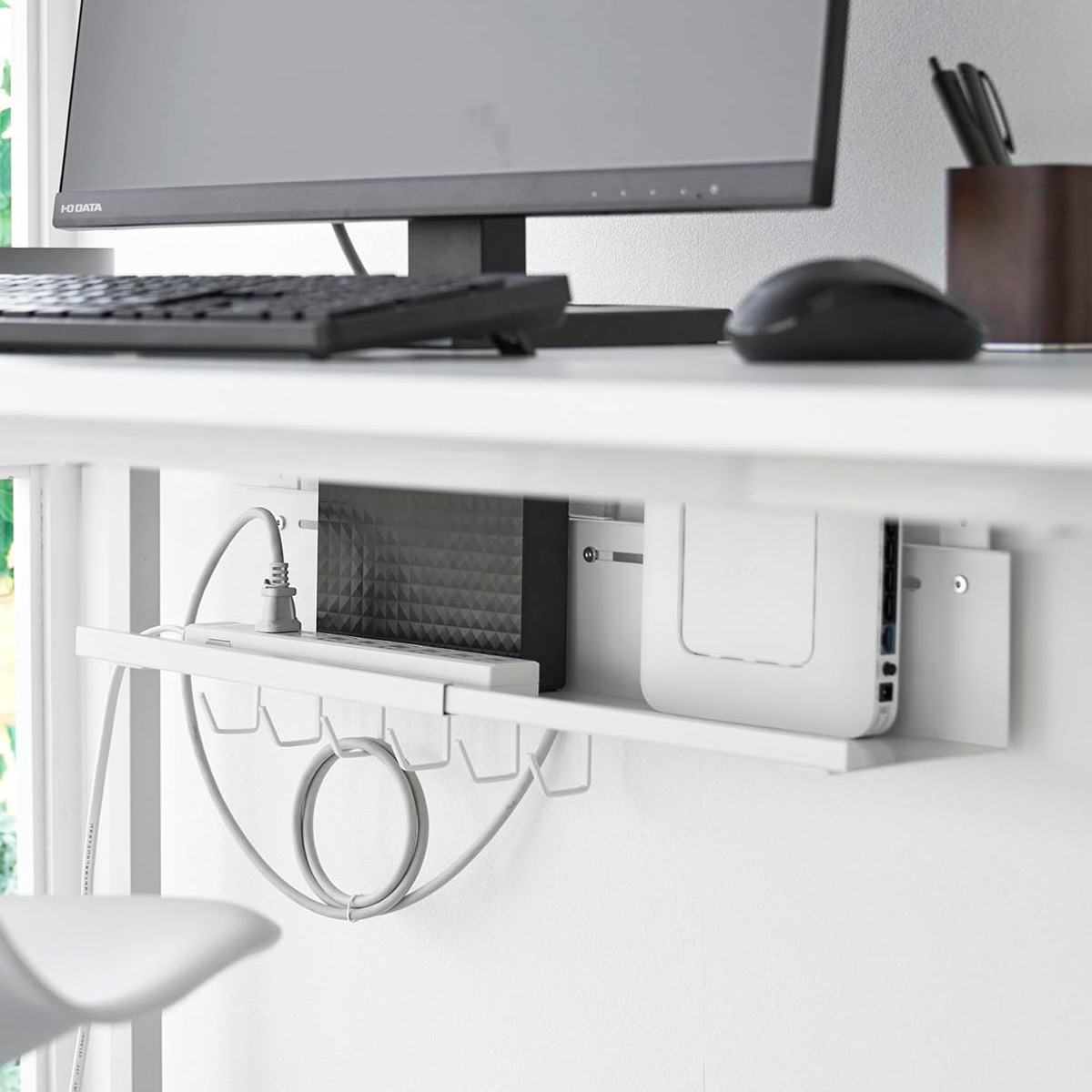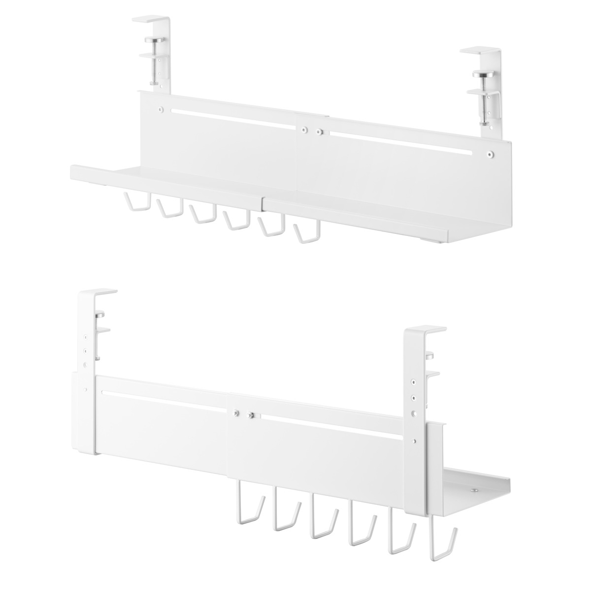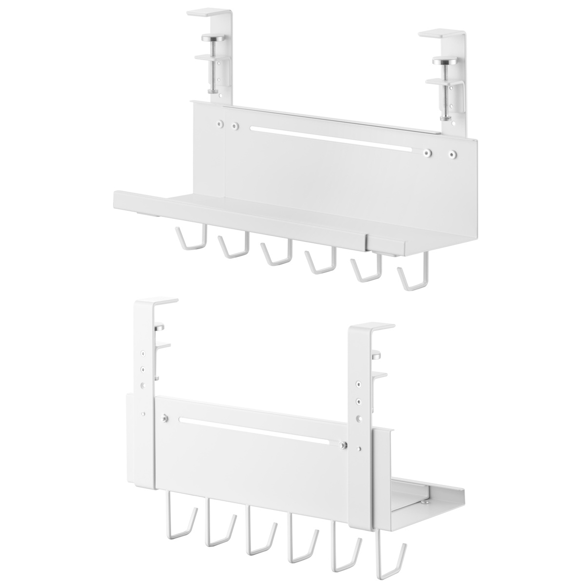 | 備考 | 【取り付け可能な場所】 天板の厚さが1〜5.5cm(幕板やパイプ等含む) 幅37cm以上(脚含まず) 奥行4.5cm以上 天板下の高さ26.3cm以内に干渉する柱や脚などがない平らなデスク等 ※設置場所の構造や材質、形状によっては取り付けできない場合があります。 |