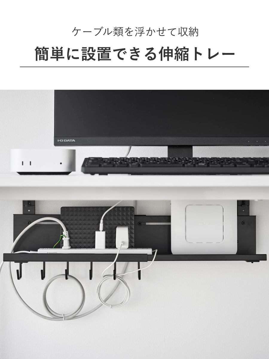 | サイズ | 約 幅37〜60×奥行13.5×高さ26.3(cm) トレー部:約 幅37〜60×奥行11.9×高さ9.7(cm) フック部:約 奥行3×高さ2.4(cm) |