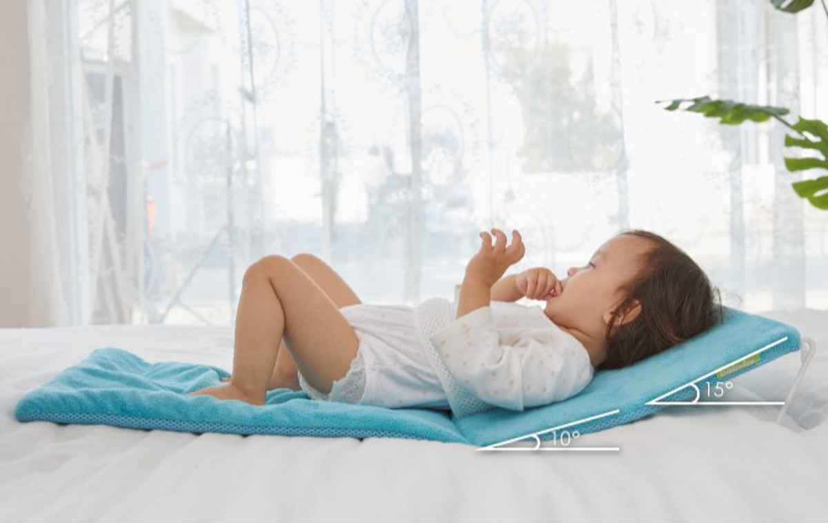 | 正しい姿勢で眠れる 赤ちゃんの頭の高さに最適な角度がついているので、正しい姿勢で寝ることができます。 | うつ伏せになっても安心 万が一枕にうつ伏せになってしまっても、優れた通気性により窒息を防止します。 |