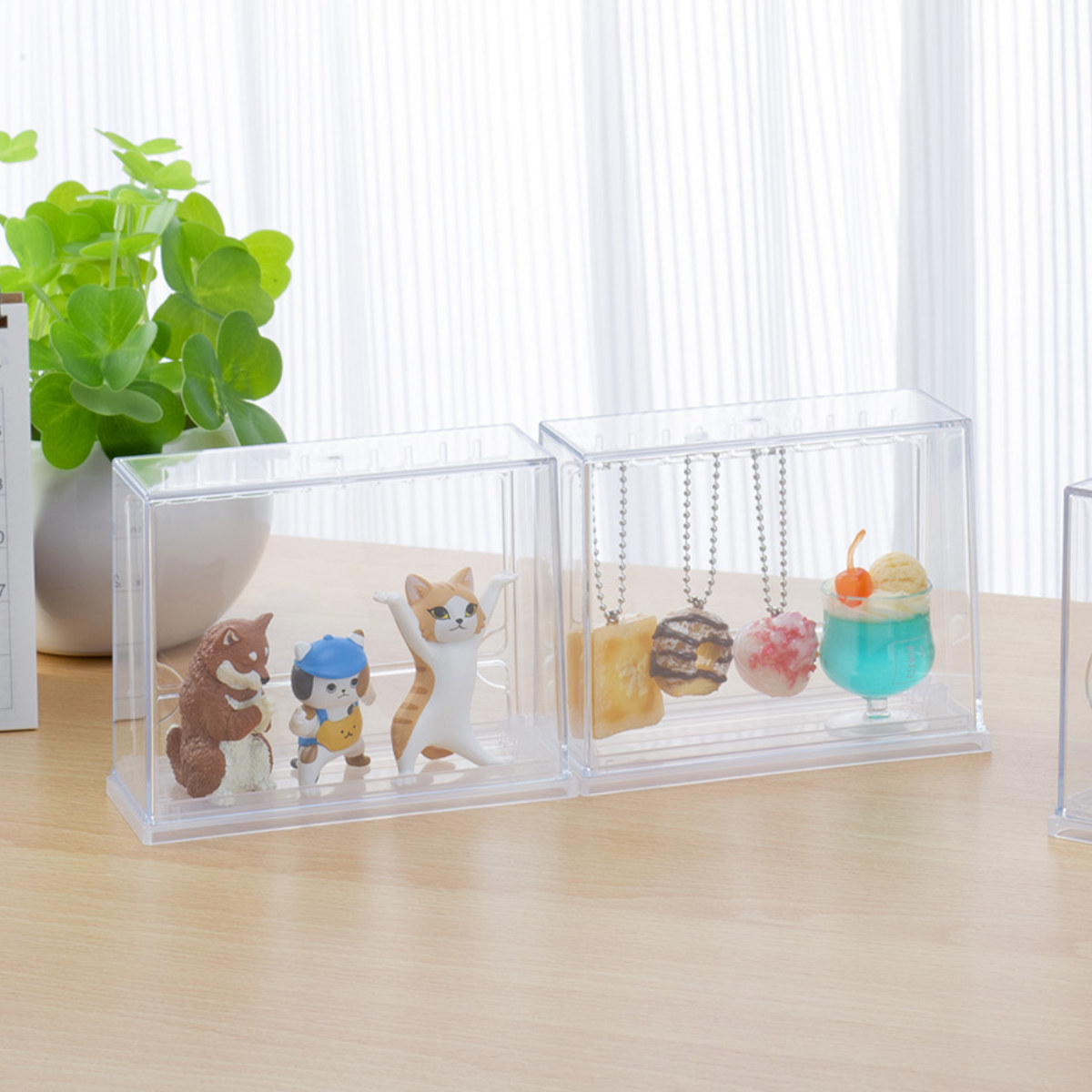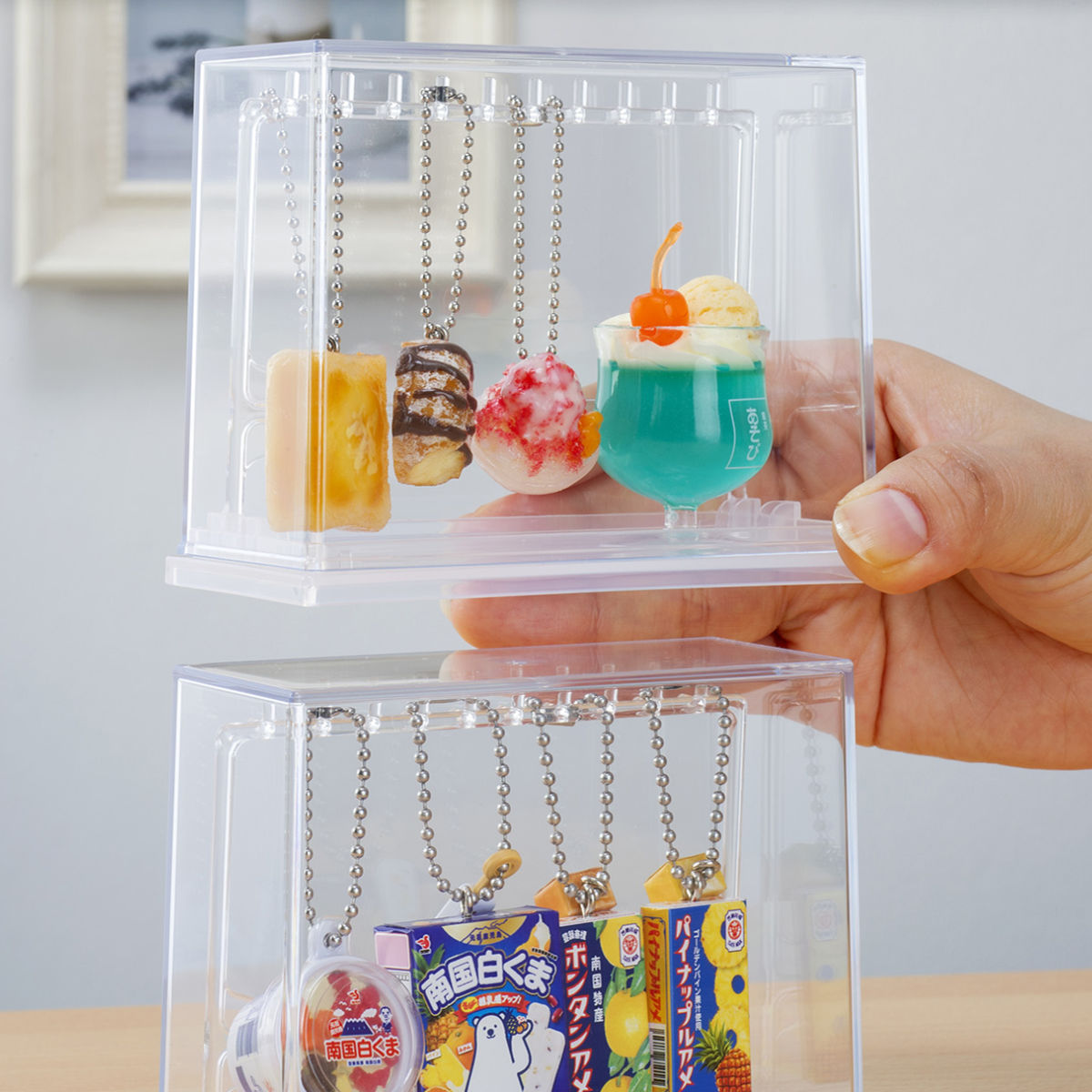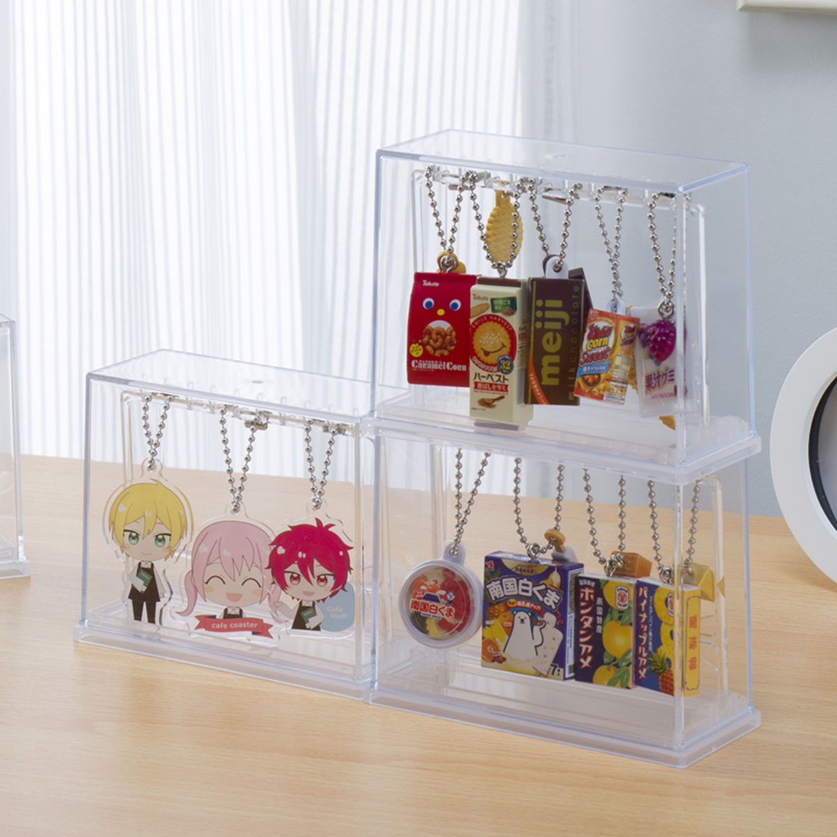 掛けて飾れる、カプセルトイ専用ディスプレイ飾りにくかったミニチュアキーホルダーやカプセルトイを、ボールチェーンで掛けてきれいに展示できるディスプレイケースです。細かなグッズも正面から見やすく、コレクションの魅力を引き立てます。