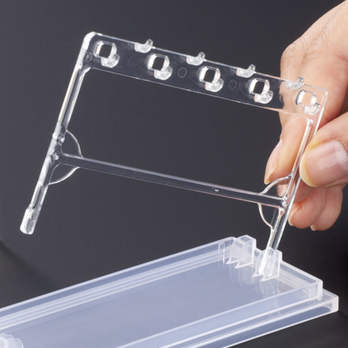 厚みのあるアイテムも飾れる設計フックパーツを後方に取り付けることで、厚みのあるキーホルダーやミニフィギュアの展示にも対応しています。チャーム以外の小物ディスプレイにも活躍します。
