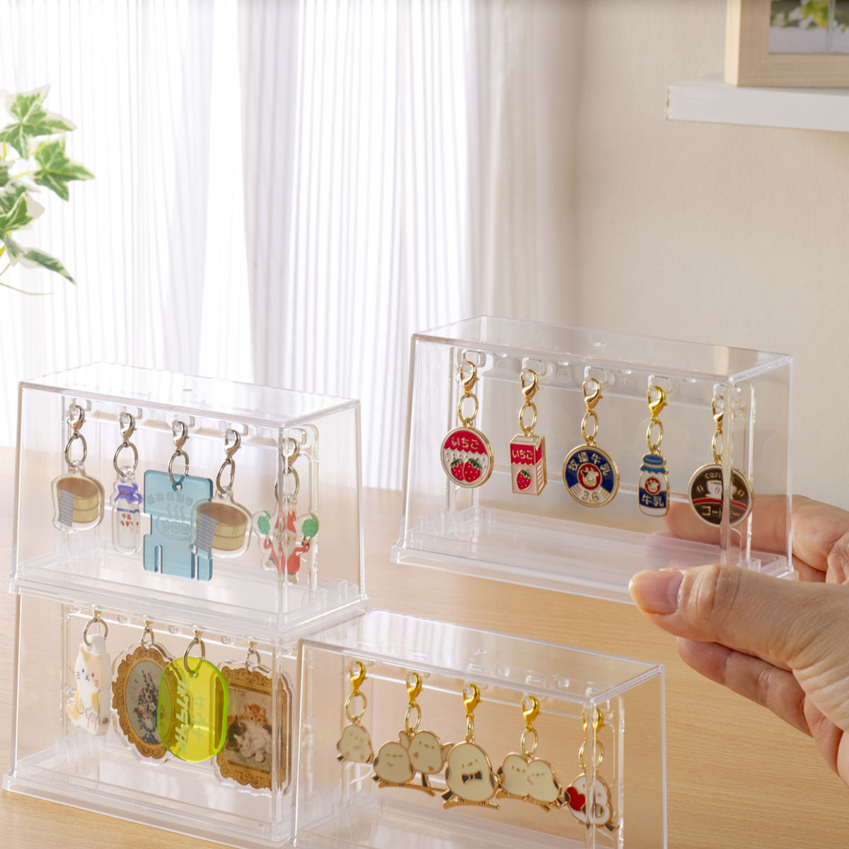 小さなチャームを主役にするディスプレイ●チャームやマスコットを掛けて飾れます。