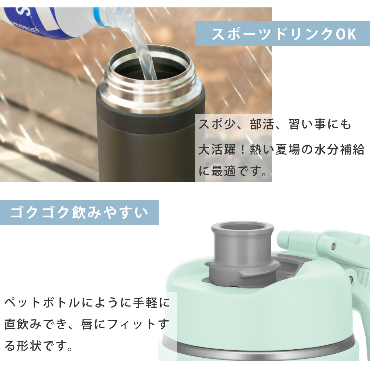 | 注意事項 | スポーツ飲料を入れてご使用になる場合は、塩分によりサビが発生する場合がございますので当日中に洗ってしっかり乾燥させてください。 |