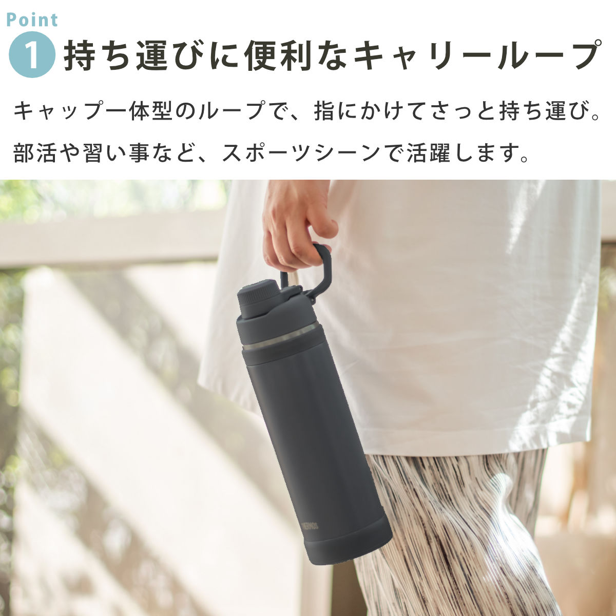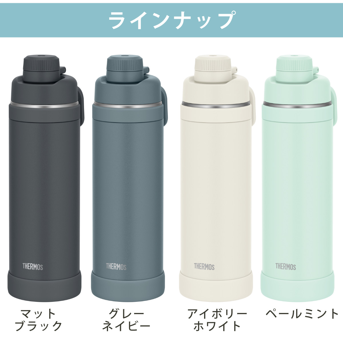 | 材質 | 内びん:ステンレス鋼 胴部:ステンレス鋼(アクリル樹脂塗装) 蓋、ループ、キャップ本体、飲み口:ポリプロピレン 蓋パッキン、シールパッキン、ボディリング、ソコカバー:シリコーンゴム |