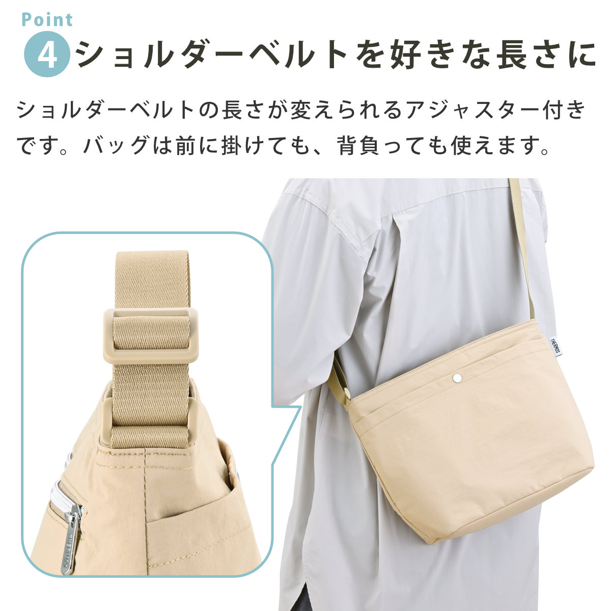 ●ショルダーベルトはお好きな長さに調整できます。