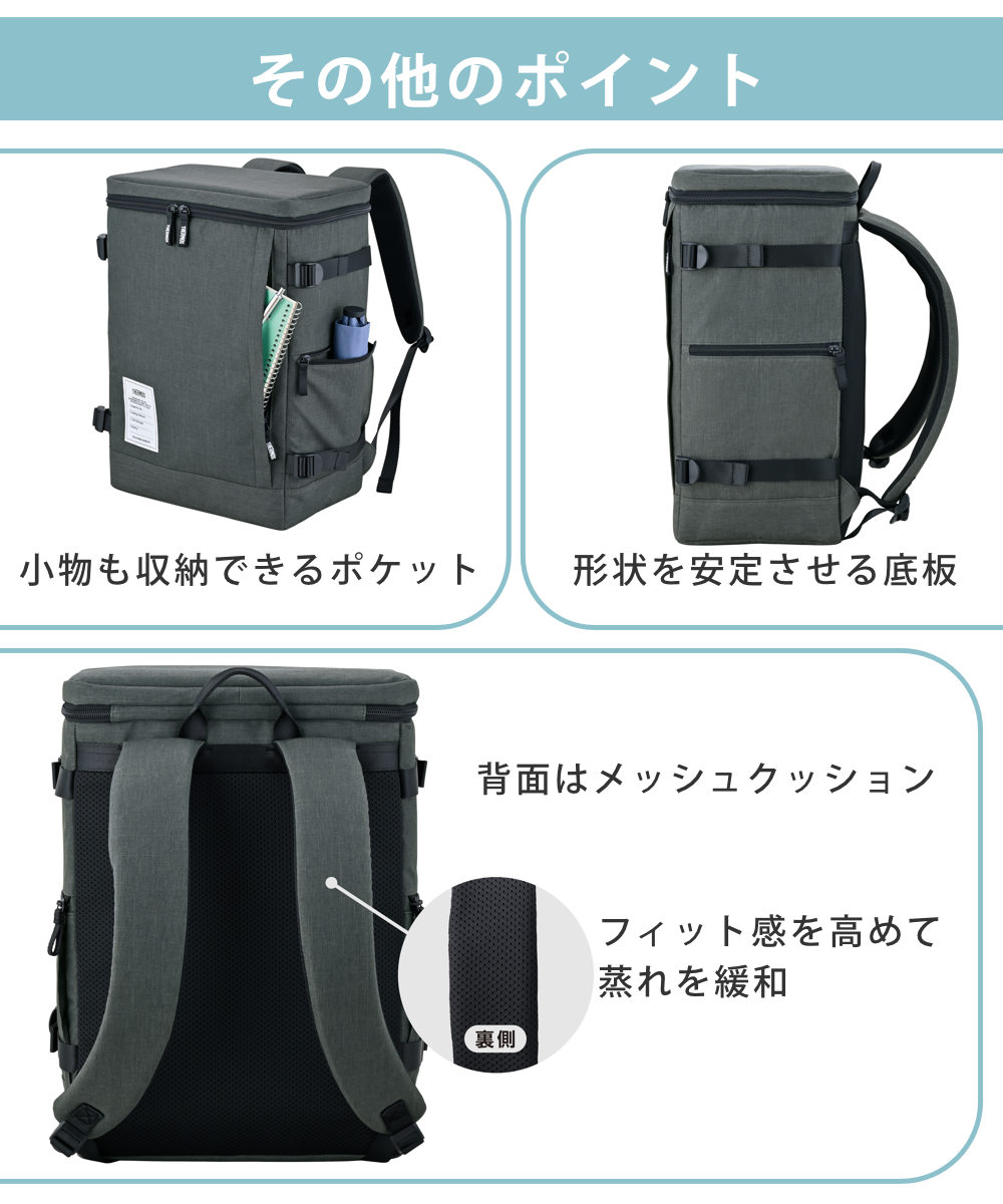 | 材質 | 外生地:ポリエステル 内生地:PEVA クッション(断熱材):ポリウレタン、発泡ポリエチレン、ポリプロピレン不織布 |