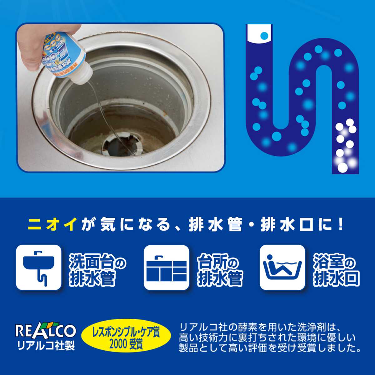 3つの酵素で排水口のヌメリや汚れを分解●3つの酵素でヌメリや汚れを分解する排水口クリーナーです。