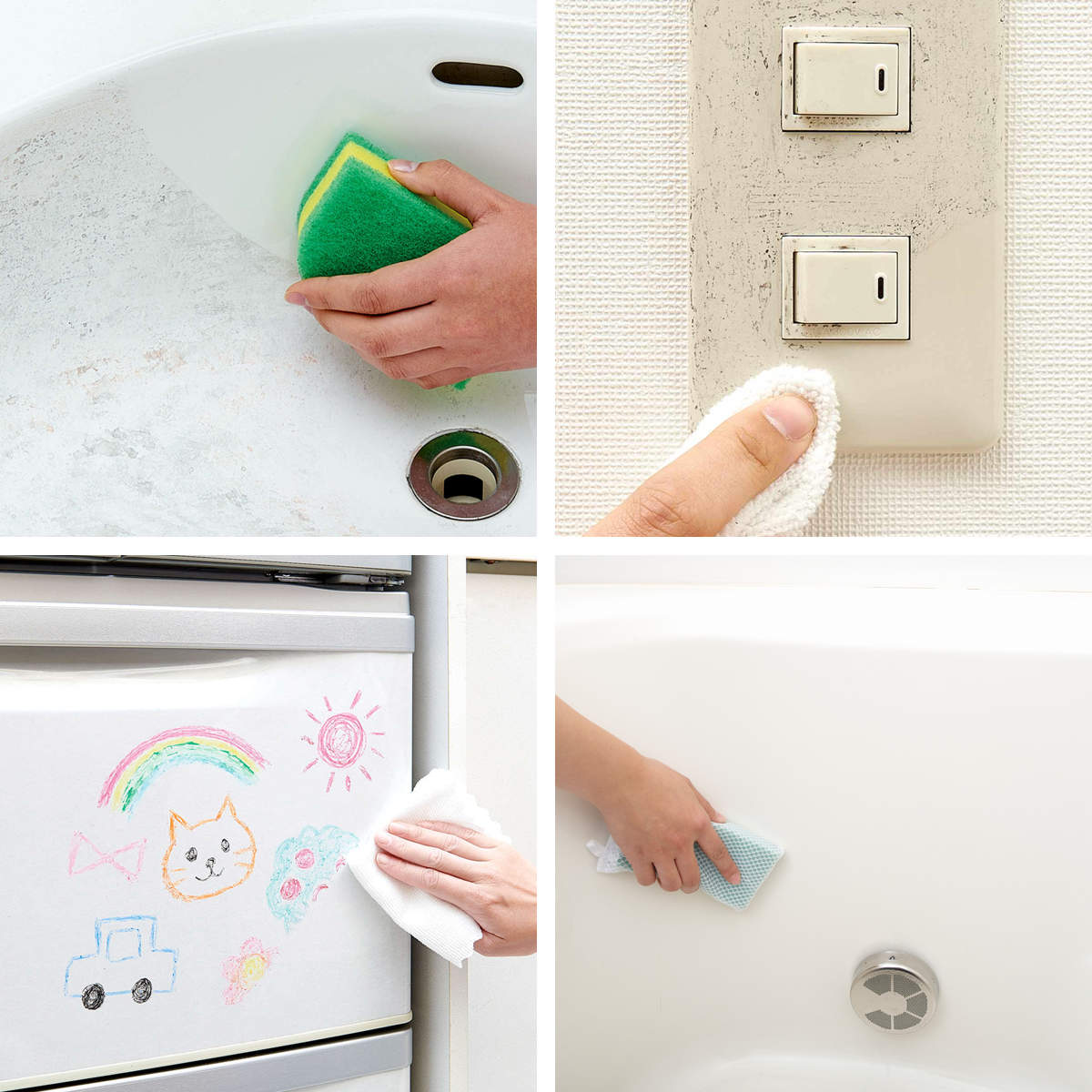 ドアノブやスイッチ周り、壁や机についた手垢汚れに。お子さまの落書き落としにも使えます。