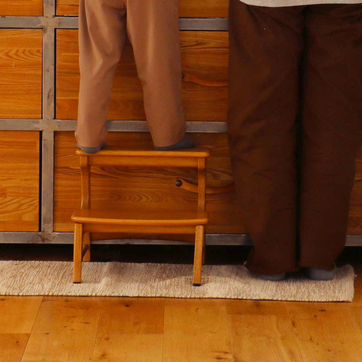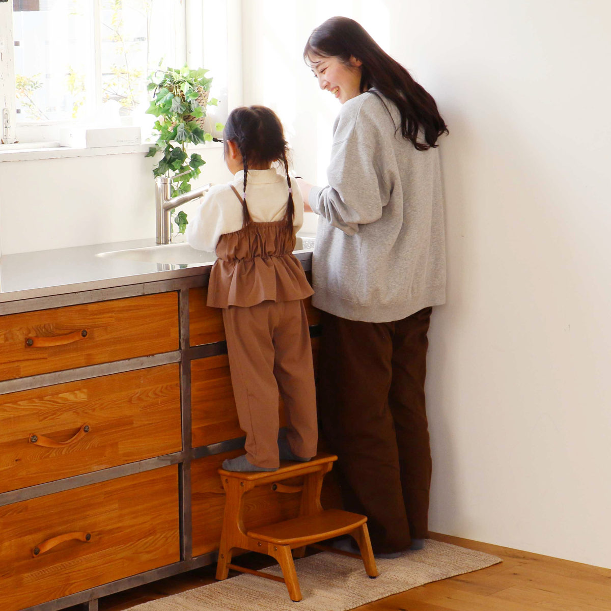 キッチンでのお手伝いや洗面所での手洗いなど、「自分でやってみたい」を応援するキッズステップです。安定感のある構造で、日常の中での自立の第一歩をやさしく支えます。