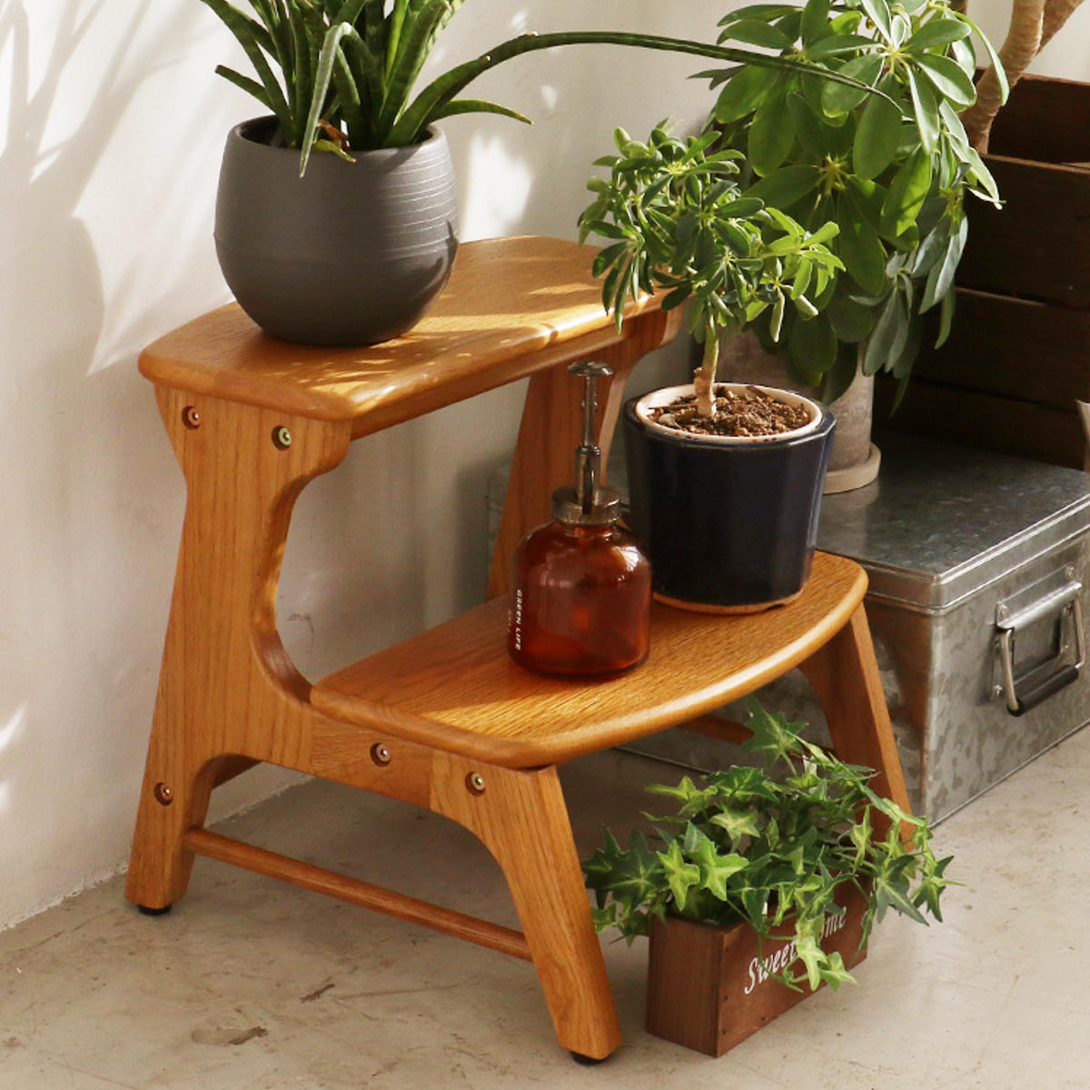 お子さまが大きくなった後は、ミニラックやプランターラックとして再活用ができます。観葉植物や小物を飾るなど、暮らしの中で長く使い続けられる「育つ家具」です。