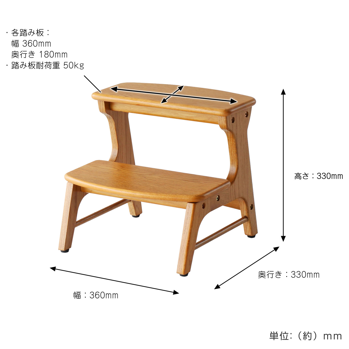 踏み台 木製 天然木 Herit. キッズステップ ( ステップ 2段 昇降 子供 子ども 踏台 ステップ台 高さ33cm 洗面所 キッチン スツール )