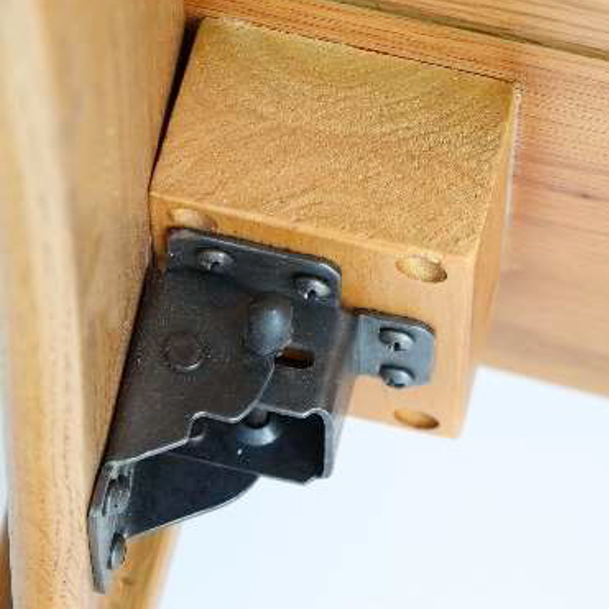 テーブル脚はワンタッチで折りたためる金具付きです。使用中に誤って折りたたまれるのを防ぐ安全ロック機構を備え、安心してお使いいただけます。
