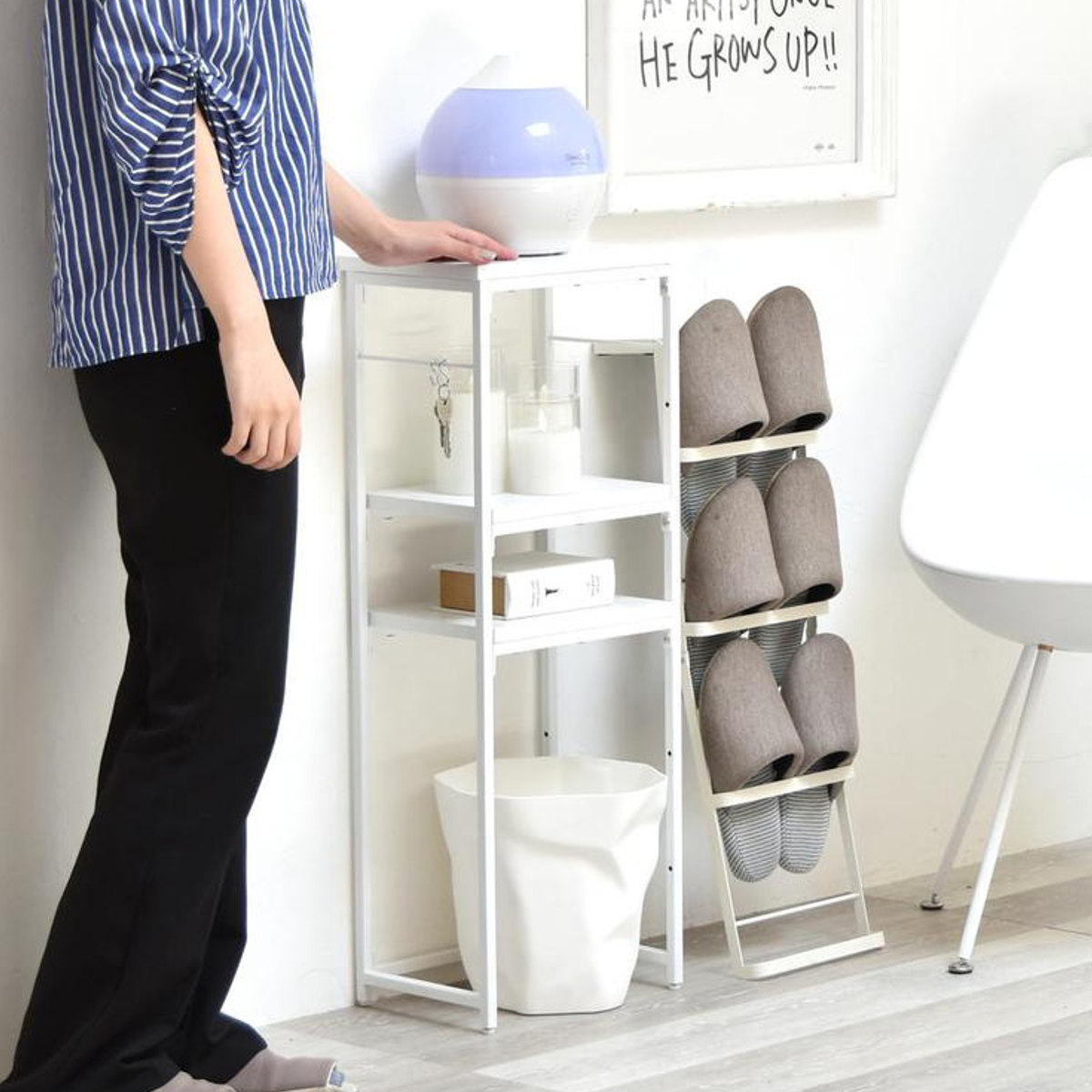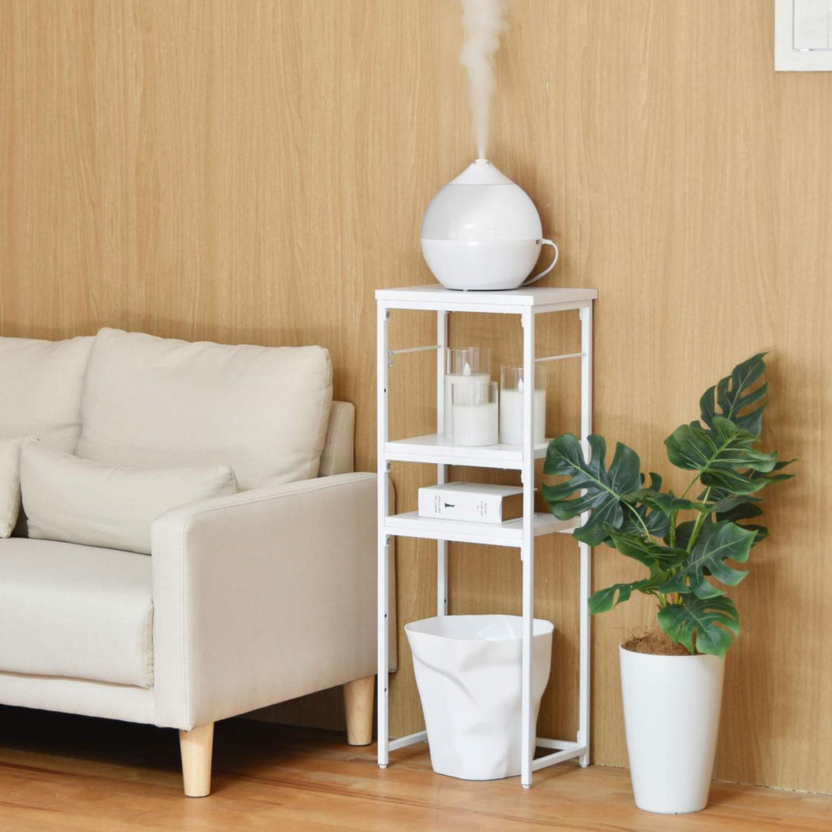卓上タイプの加湿器がすっきり収まるサイズです。高い位置に加湿器を置くことで、 お部屋全体を効率よく加湿できます。